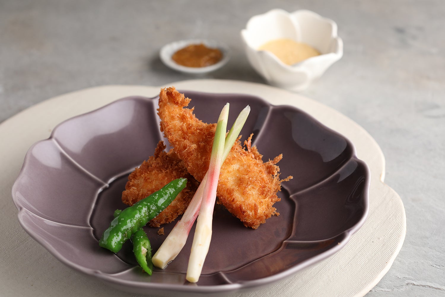 ◇閖上ひらめフライ らっきょうタルタルと葉生姜味噌(1,280円)