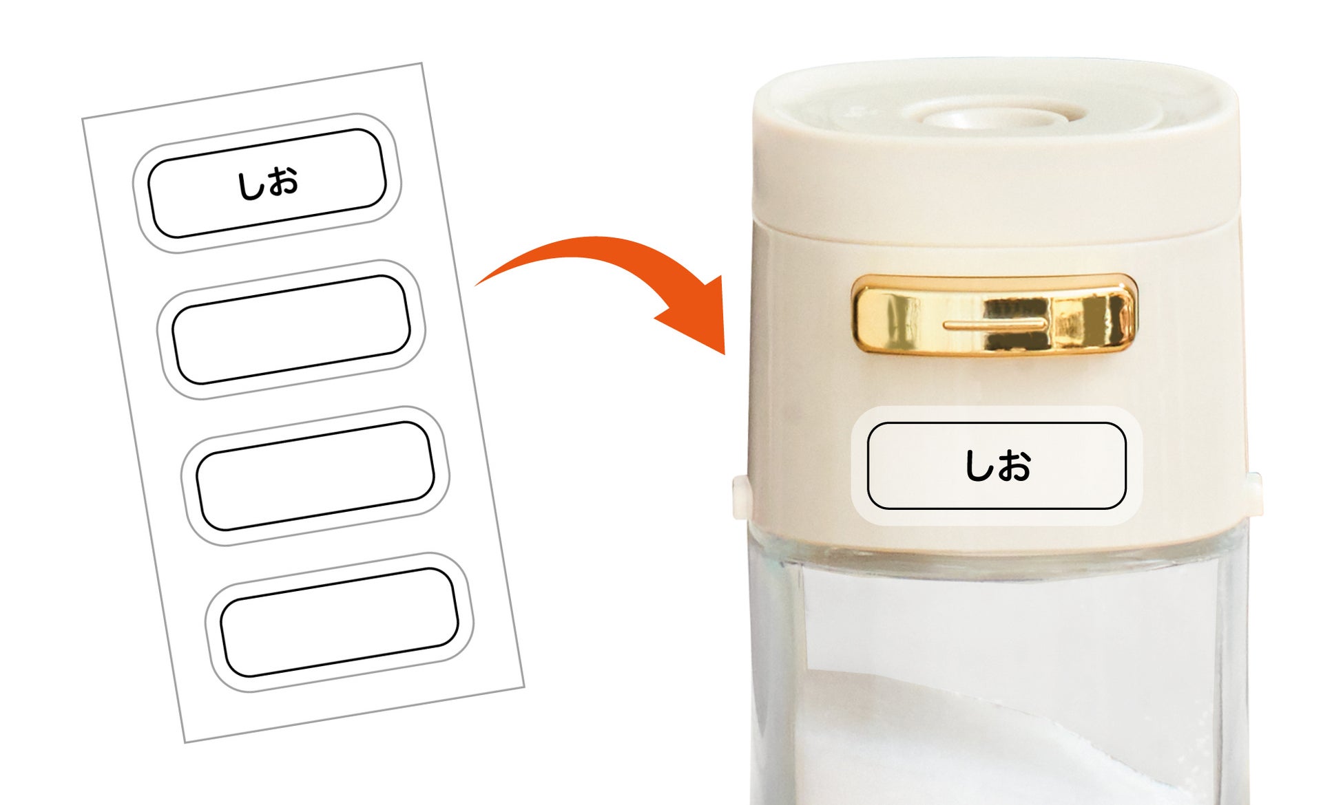 何が入っているのか一目で分かる便利なラベリングシール付き。塩以外の物にも名前や日付を油性ペンで自由に書けます。