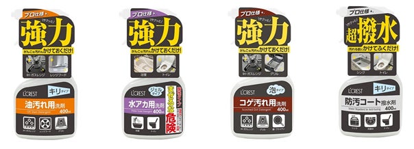 4種類のプロ仕様洗剤で年末の大掃除!「油汚れ洗剤 400ml」、「水アカ用洗剤 400ml」、「コゲ汚れ用洗剤 400ml」、「防汚コート撥水剤 400ml」が登場!