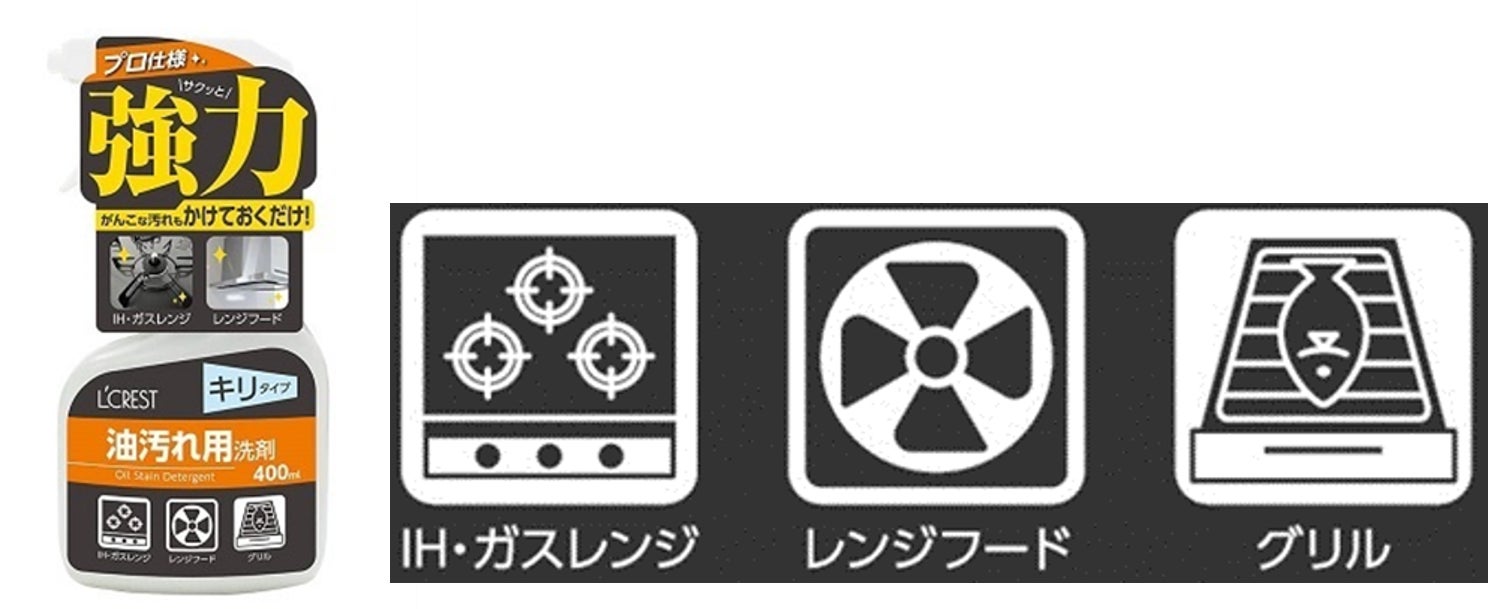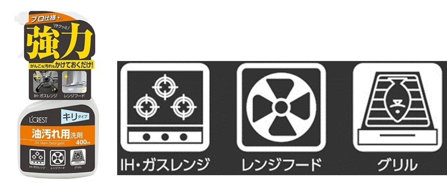この度、コメリオリジナルブランド「L’CREST(ルクレスト)」から、汚れに合わせて使い分けることができる「油汚れ洗剤 400ml」、「水アカ用洗剤 400ml」、「コゲ汚れ用洗剤 400ml」、「防汚コート撥水剤 400ml」の洗剤4種類が登場いたします。お手入れをしていても発生してしまうシンクや鏡の水アカから、意外と忘れがちな換気扇やオーブンといった油汚れまで、プロ仕様の洗剤を使い分けていただくことで、簡単に綺麗にすることができます。
