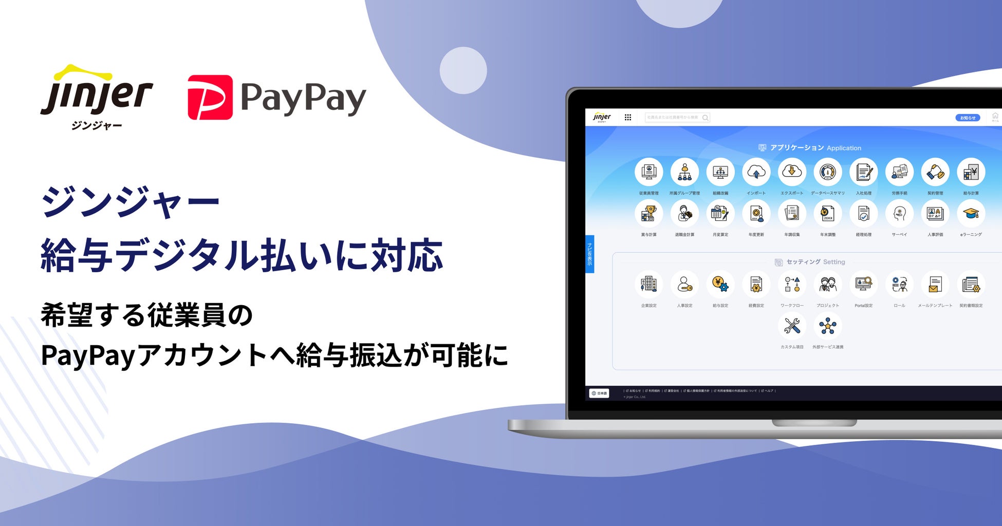 jinjer株式会社(本社:東京都新宿区、代表取締役社長:桑内 孝志 )が提供するクラウド型人事労務システム「ジンジャー」が、PayPay株式会社(本社:東京都港区、代表取締役 社長執行役員CEO:中山 一郎 以下、PayPay)が提供する「PayPay給与受取」を利用した給与デジタル払いに対応したことをお知らせします。