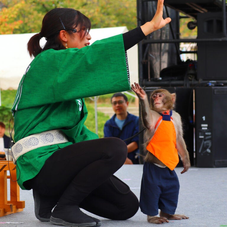 1000年以上の歴史を誇る『日本伝統芸能 猿回し』お猿とともに心躍るエンターテイメントをお届けします。