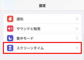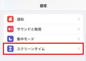 ステップ1:iPadなどの「設定」から「スクリーンタイム」へ進みます。