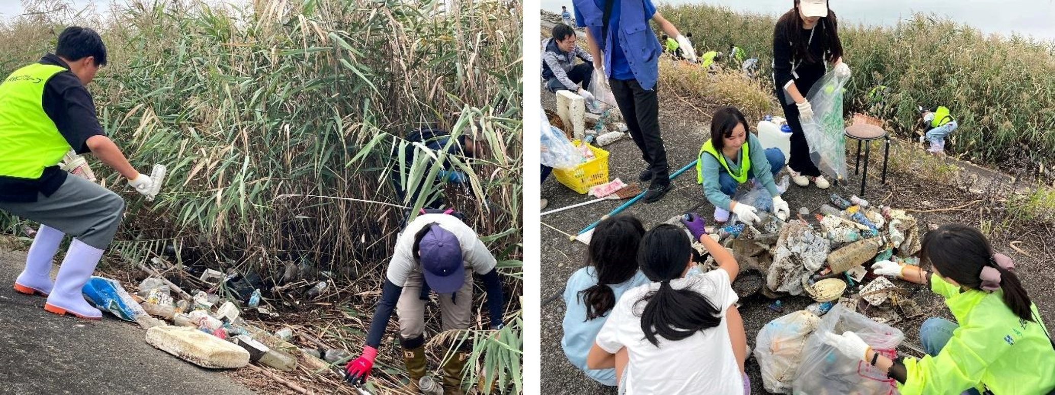 当日は雨がぱらつくこともありましたが、曇り空の下、地域の方々をはじめ、市民団体や企業、学生ボランティアなど、集まった参加者たちは、足元に気を付けながら、ペットボトルや空き缶、発砲スチロールなどの漂着ごみを拾い集めていました。