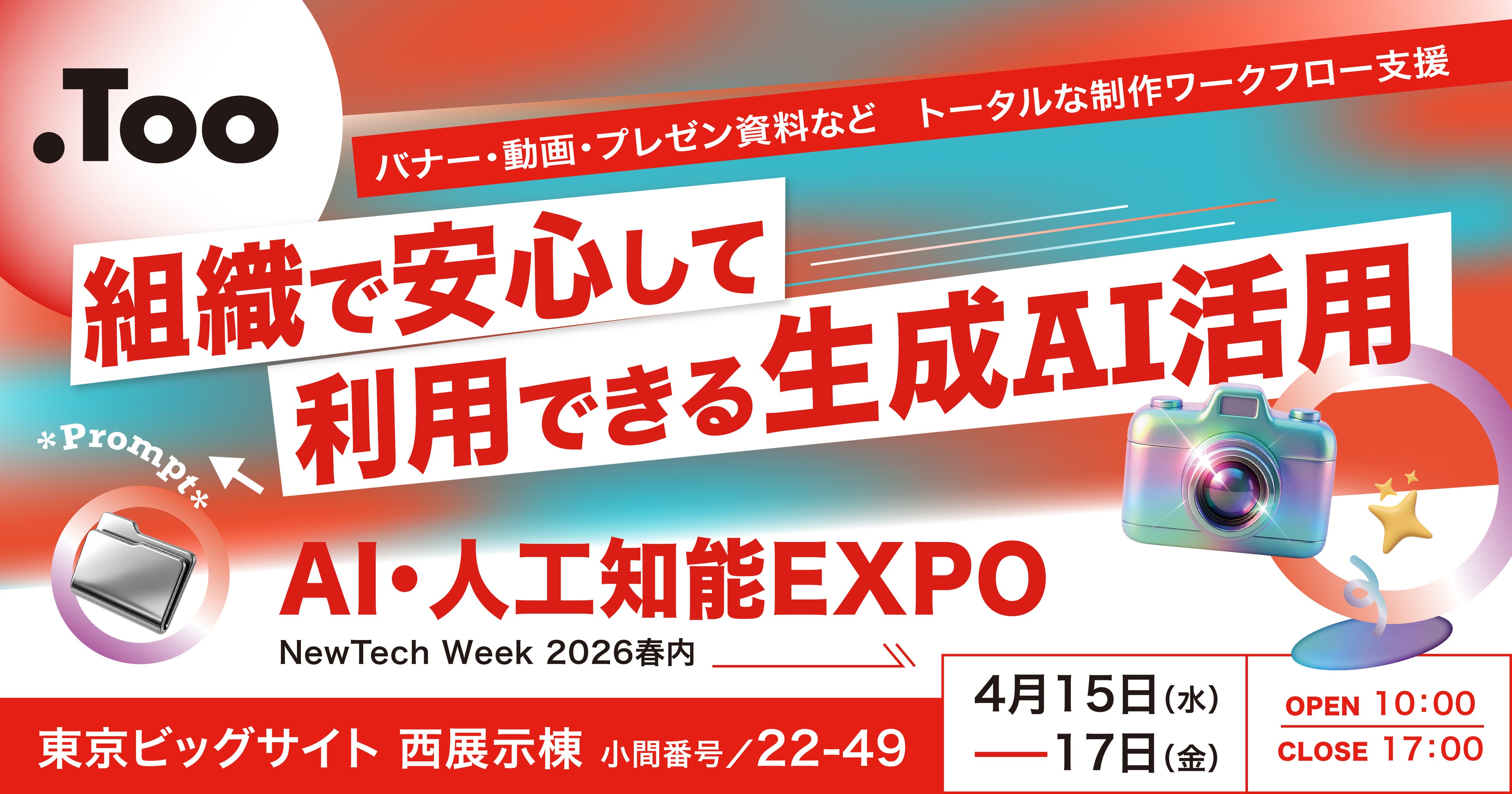 クリエイティブ市場の総合商社・株式会社Too(本社/東京都港区虎ノ門3-4-7、社長/石井剛太、以下Too)は、「NewTech Week 2026春」内で開催される「第10回 AI・人工知能EXPO 春」に出展します。ブースでは、「組織で安心して利用できる生成AI活用」をテーマに、「Adobe Firefly」と「Acrobat Studio」を基盤とした、効率的な制作プロセスの構築をご提案します。
