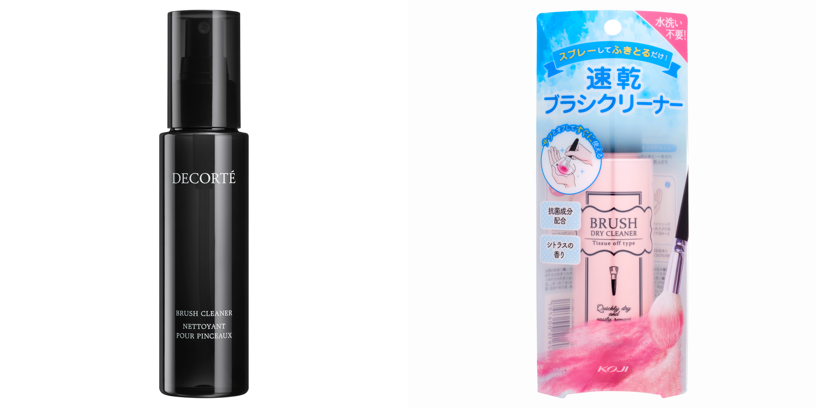 速乾のブラシクリーナー。ティッシュに本品を吹きかけてメイクブラシを撫でるだけで、ブラシの汚れがほとんど落ちてくれます。
