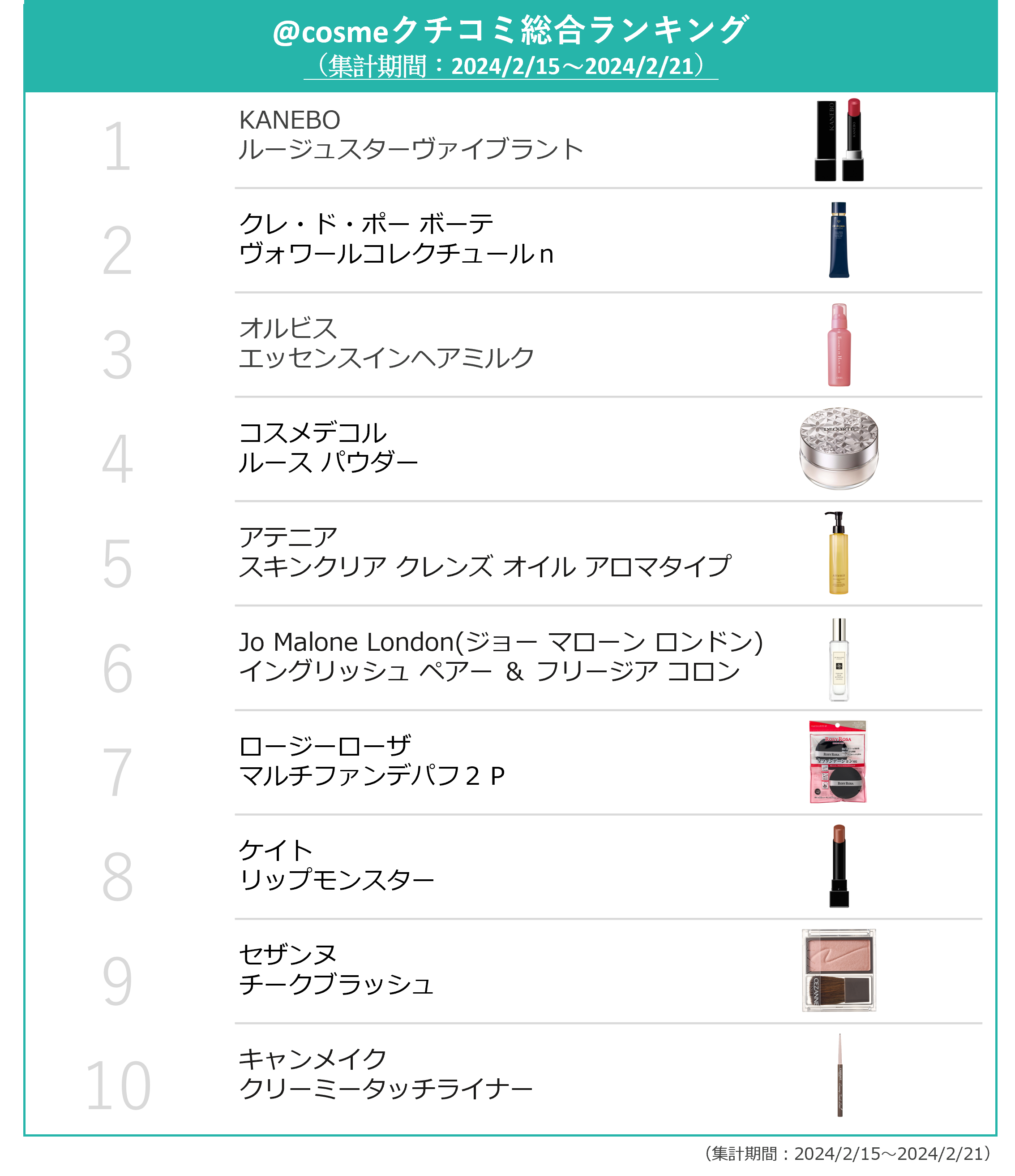 2.@cosmeクチコミ総合ランキング(集計期間:2024/2/15~2024/2/21)