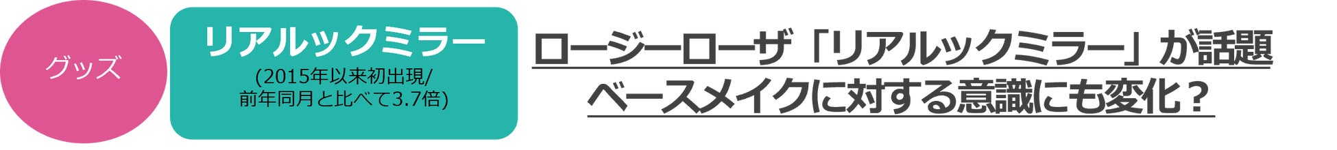 ロージーローザの「リアルックミラー」というワードがクチコミで増加しています。本当の肌色を鮮明にうつすミラーということで、自分のリアルな肌の状態を目の当たりにして、ベースメイクに力をいれるようになったという声も見られており、意識の高さがうかがえます。
