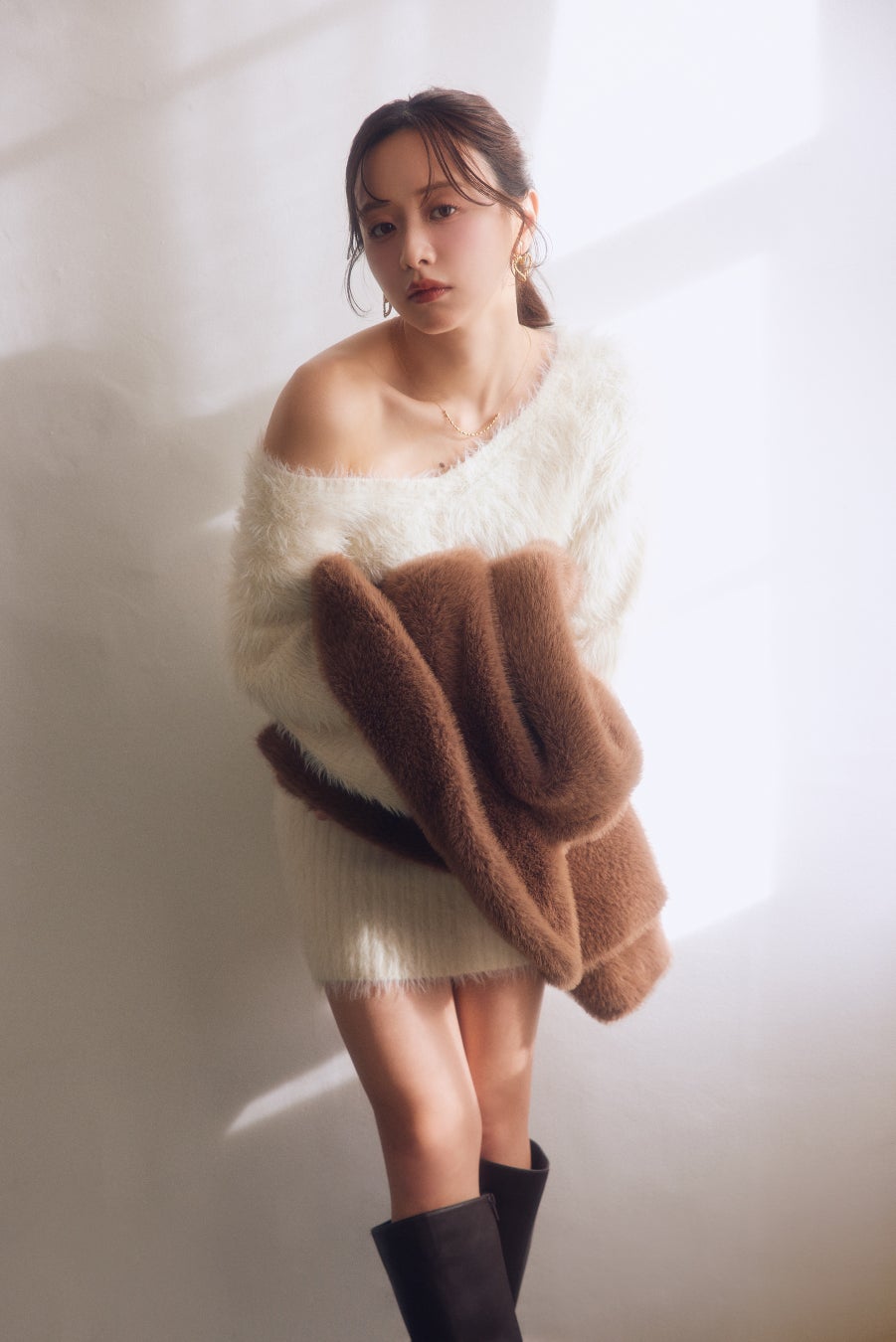 ミニマルモチーフのスカートやニット、ふんわりとしたシャギーアイテムがやわらかな光を纏い、女性らしさを軽やかに引き出します。フェイクファーのダッフルショートコートは、冬の街をドラマティックに彩る主役アウター。さらに、ビジューを散りばめたホリデーレッドのニットやチェック柄スカートなど、心まで温まるラインナップが登場。