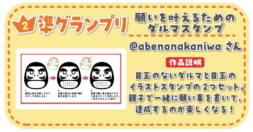 準グランプリ…@abenonakaniwaさん 「願いを叶えるためのダルマスタンプ」