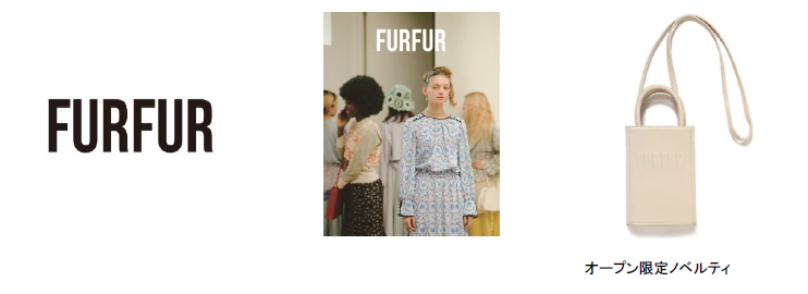 洋服好きで高感度な女性をロマンティックで幸せな気分へと導きます。店舗では、FURFURで人気の高いスウェットワンピースを今季らしく半袖にアレンジしたアイテムの新店限定カラーを発売。さらに、30,000円(税込)以上お買上げで、オリジナルミニショルダーバッグをプレゼントいたします。