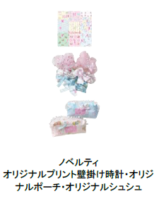 またリニューアルを記念し、対象商品をお買い上げの方にオリジナルプリント壁掛け時計・オリジナルポーチ・オリジナルシュシュをノベルティとしてプレゼント。