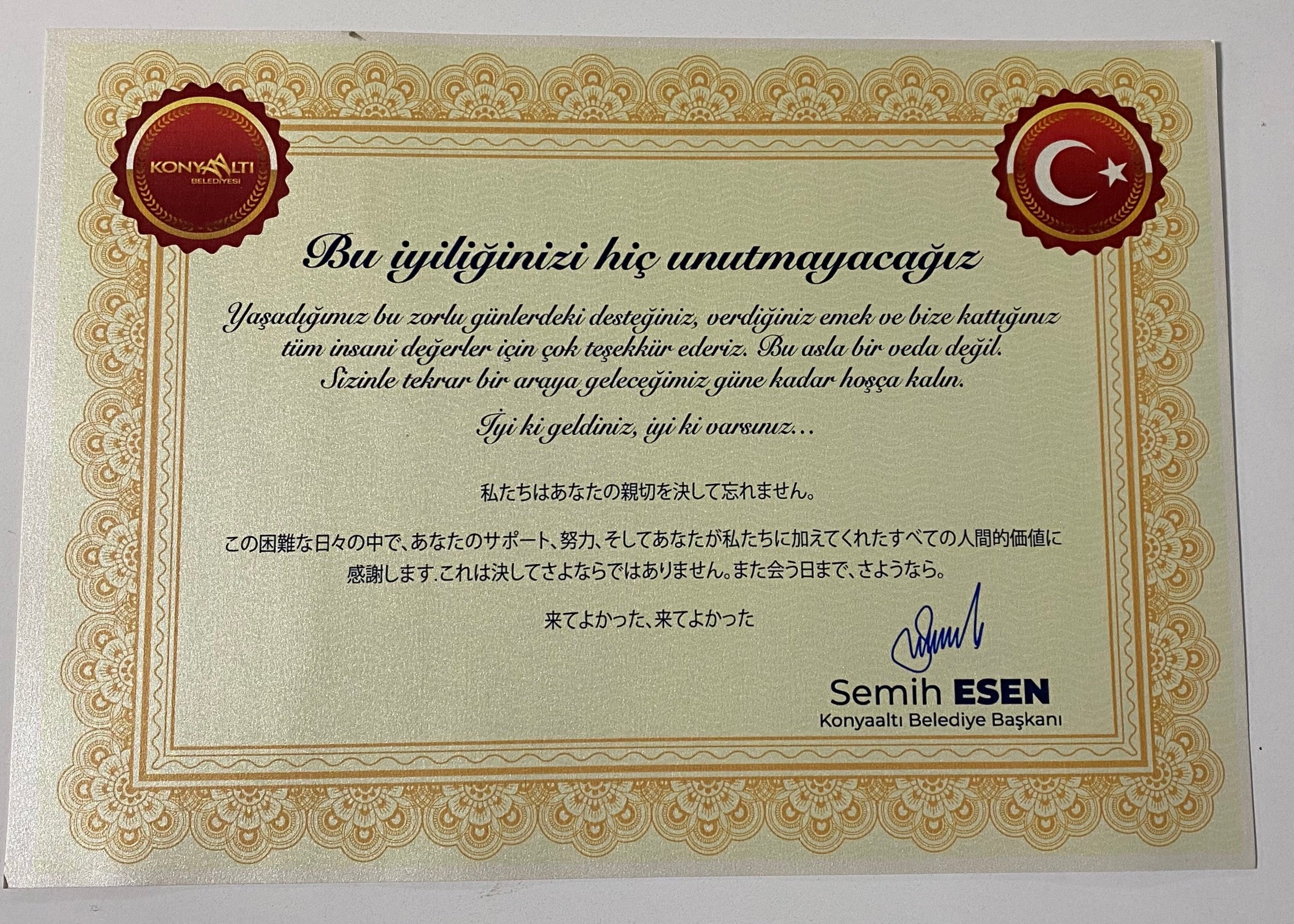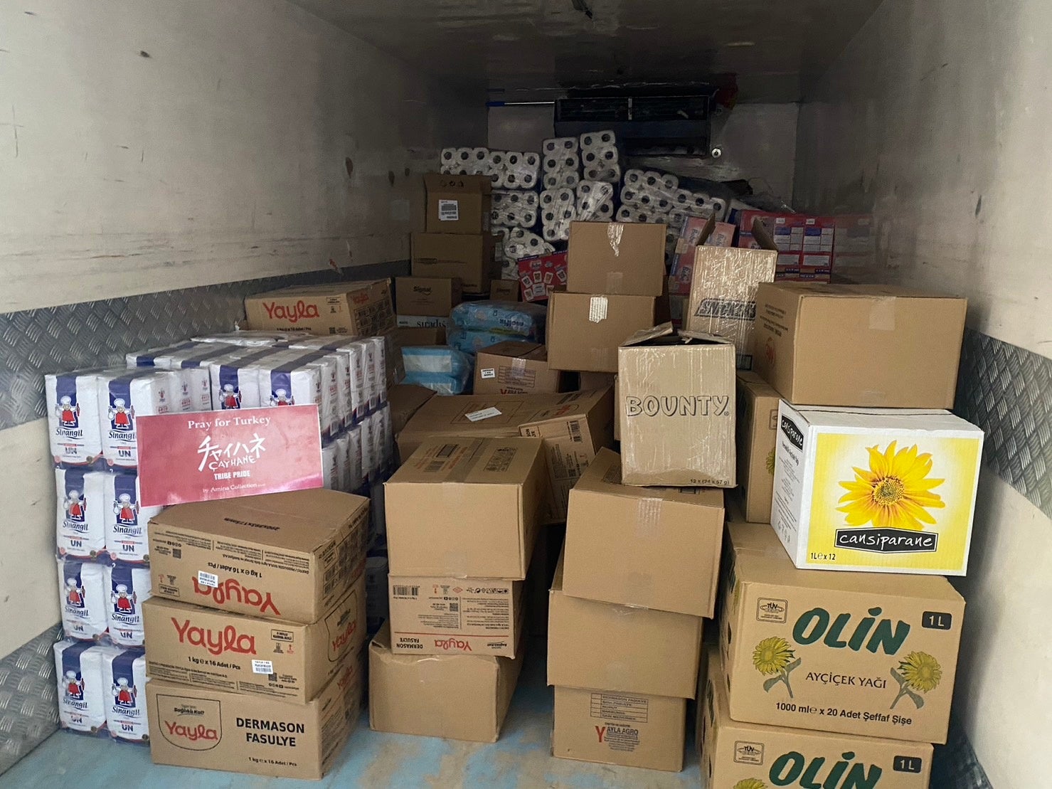 T.C. Konyaaltı Belediyesi(トルコ アンタルヤの市庁舎)などの集配所に支援物資を運び、被災者にいち早く届けていただきました。