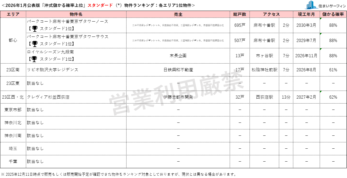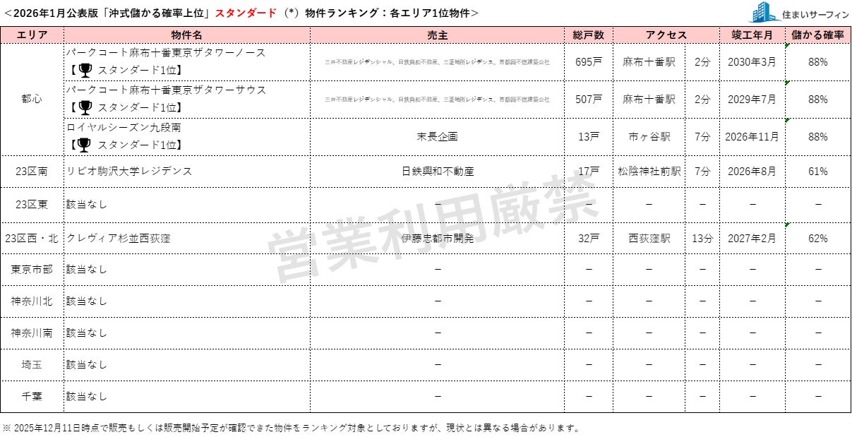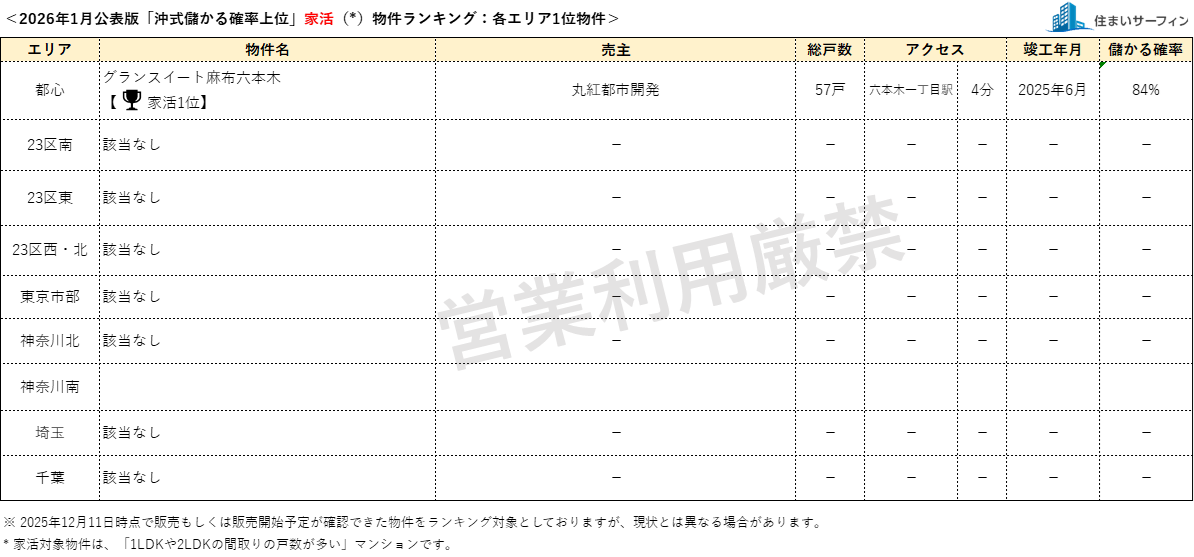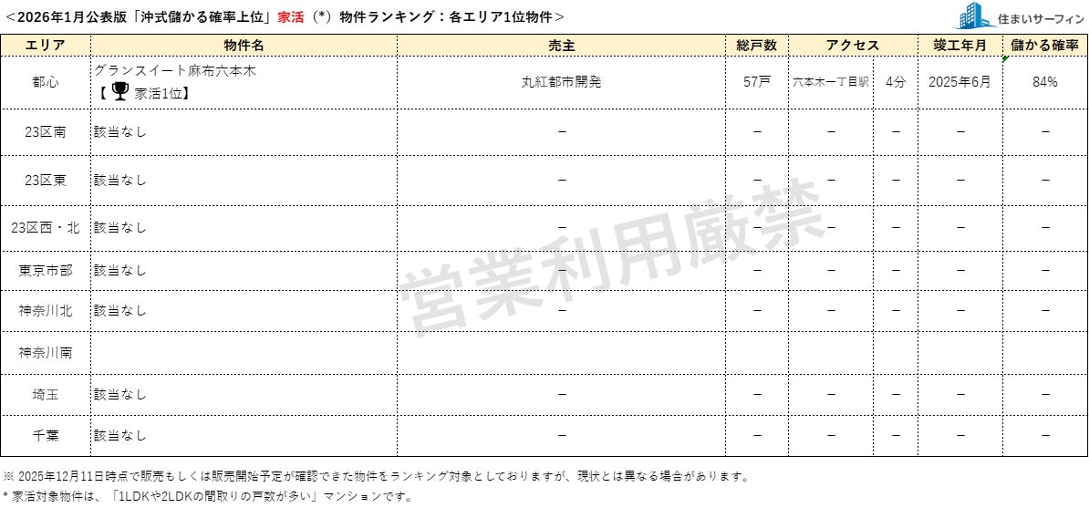 [住まいサーフィン]資産性の保たれやすいマンションがわかる首都圏エリア別「沖式儲かる確率上位マンションランキング」2026年1月版公表