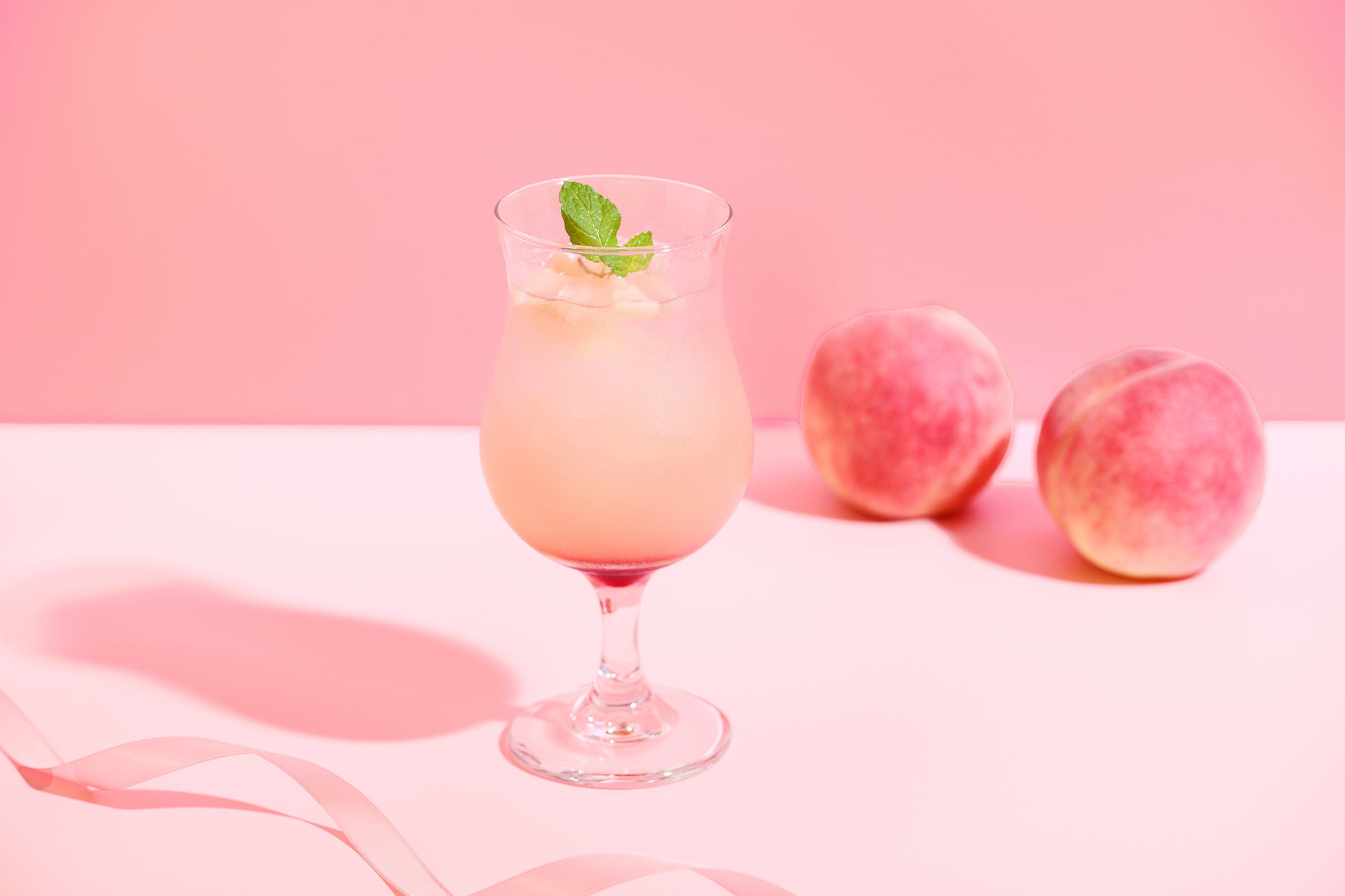 エレガントな香りが特徴のフレンチローズをベースに、ピンクとクリアのグラデーションで仕上げた夏らしい爽やかなドリンクです。トッピングには桃の果肉を使用し、桃の香りと果肉感をお楽しみいただけます。