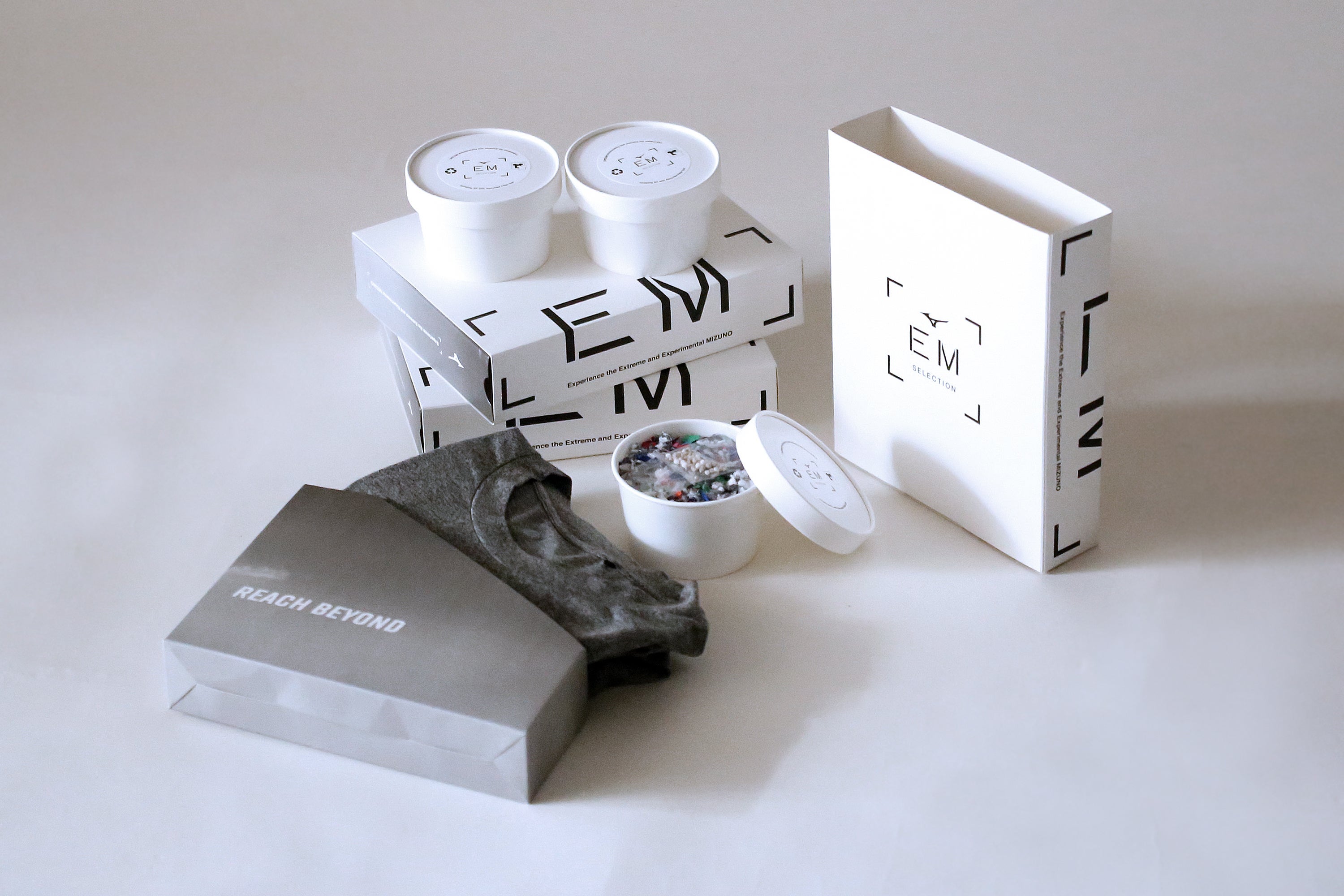 【EM】とは、Experience the Extreme and Experimental Mizunoの略称で、スポーツで培った技術を体験してほしいという思いから昨年、スタートしました。ミズノが持つ様々なカテゴリーから現代のライフスタイルシーンに沿ったプロダクトを抽出し、新たなスタイルを提案します。今回は第四弾としてSDGsをテーマに、ミズノならではのライフスタイルウエアが完成しました。