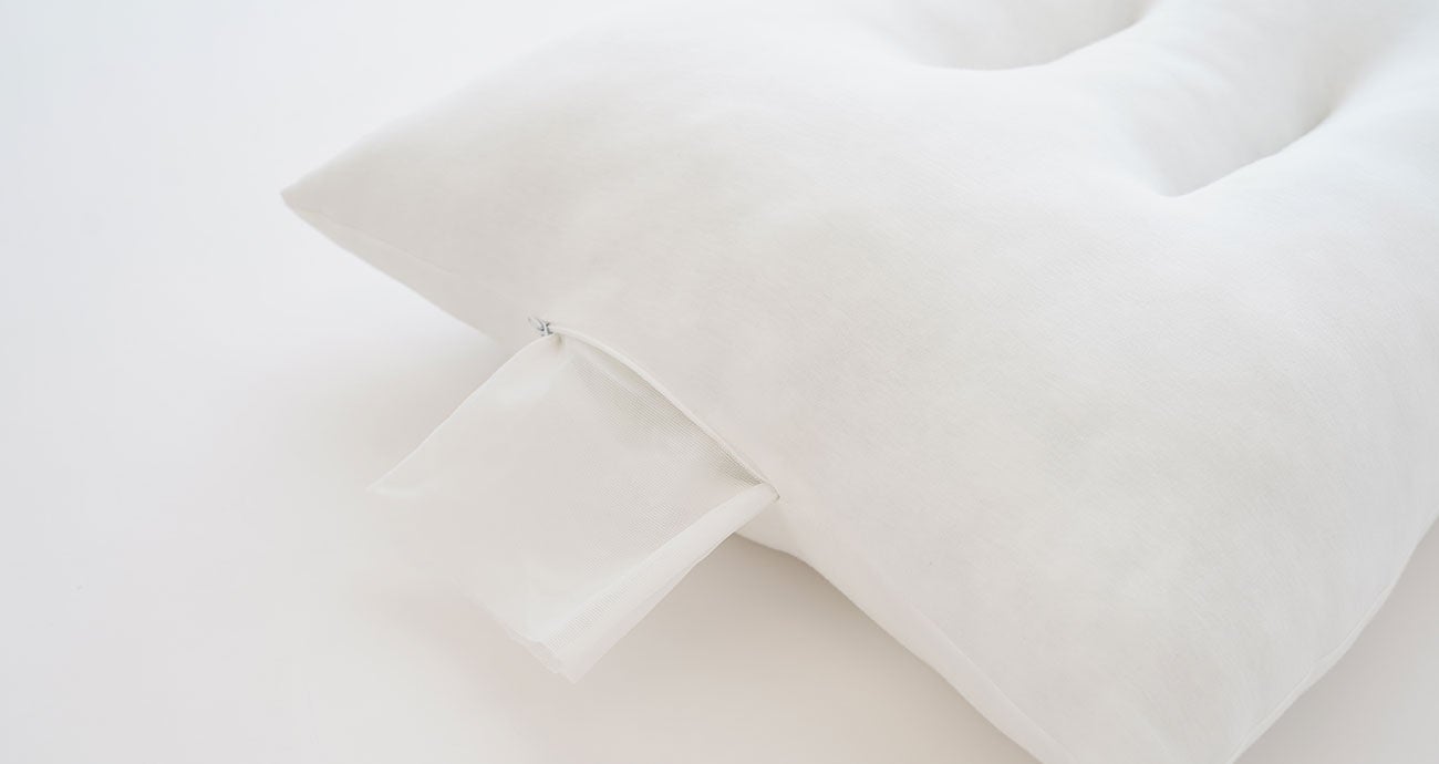 枕本体には、中素材を出し入れすることができる「調節口」がついており、簡単にお好みの高さに調節することができます。