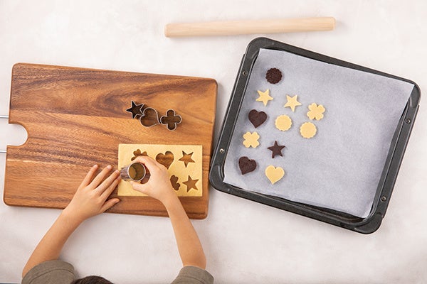 冷凍状態の生地が届くので、型で抜いたりカットして焼き上げるだけで簡単にクッキーが作れます。