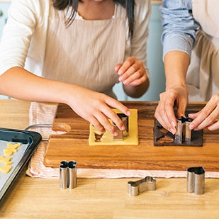 「スティック状の生地は洗い物が少なく、子どもだけで進められたので、とても楽で助かりました」「シート状の生地を余らせないよう、いかに効率的に型抜きするかを子どもが考えていて、楽しそうでした」