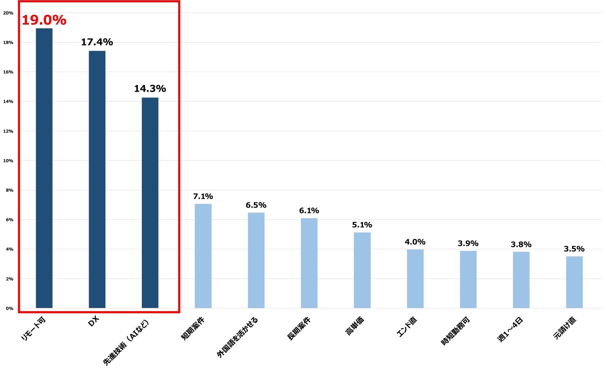 1位「リモート可」、2位「DX」、3位「先進技術(AIなど)」