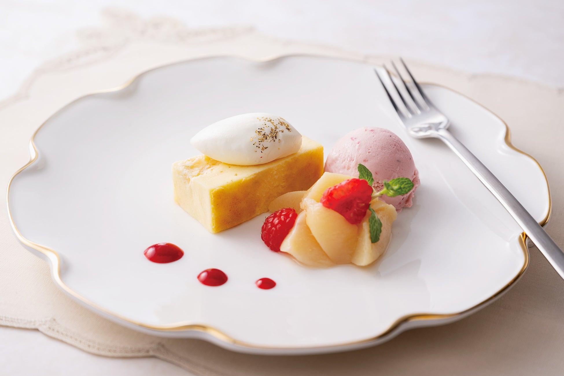 ③「バニラのクラフティ 桃とハーゲンダッツストロベリーアイスクリーム添え」