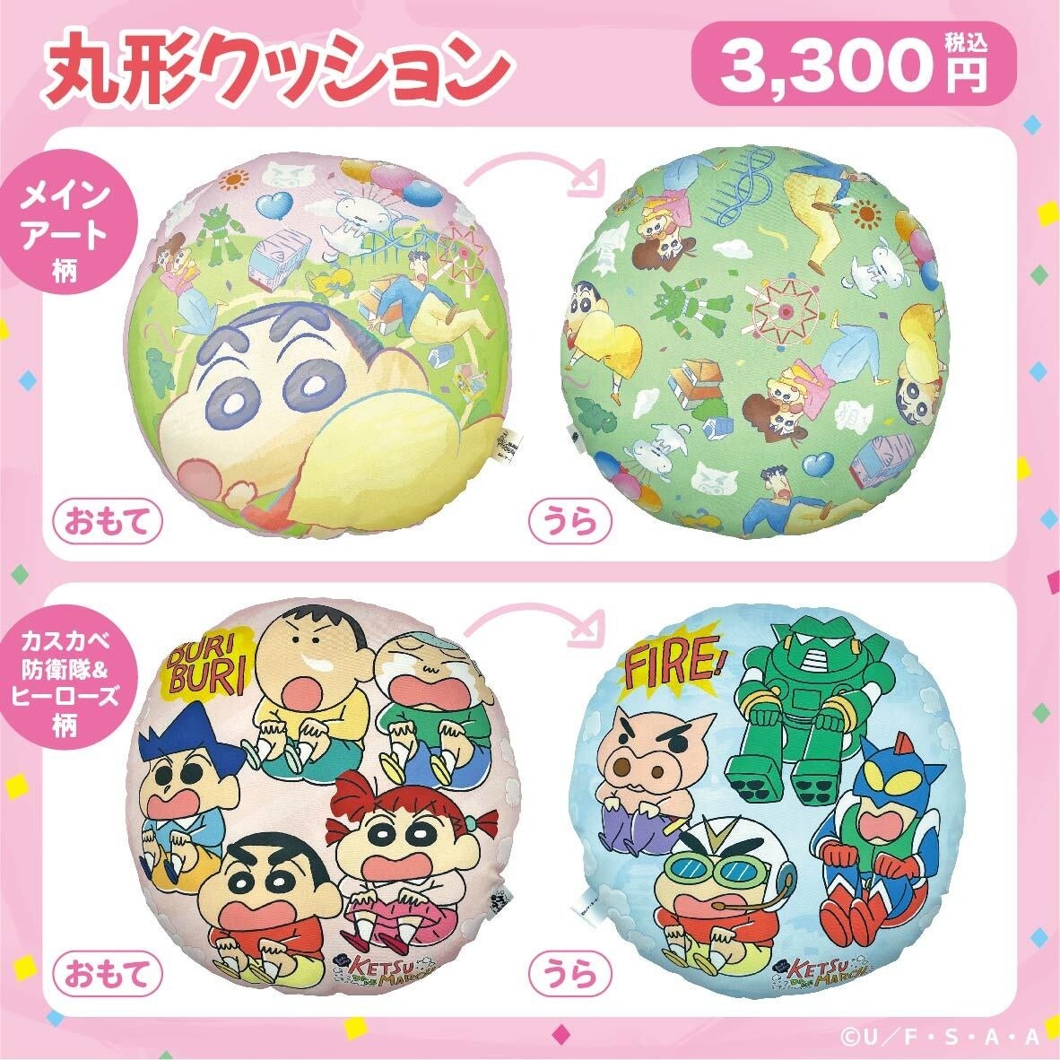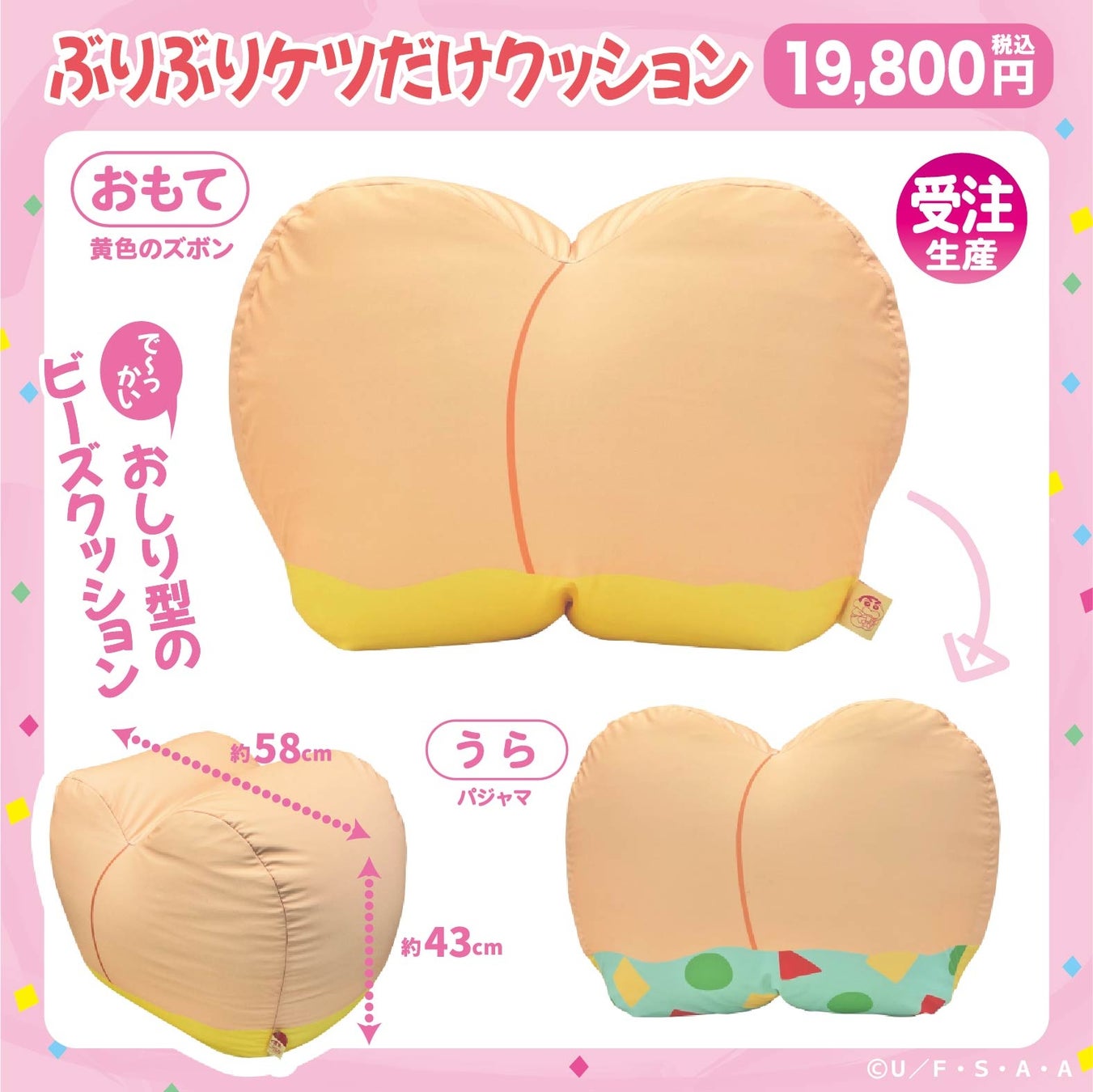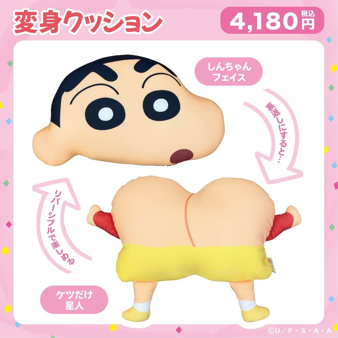 一見するとしんちゃんの顔型のクッション…ですが、ひっくり返すと「ケツだけ星人」に大変身!
