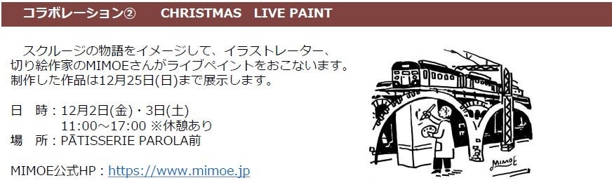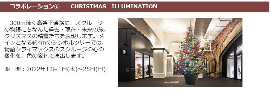 スクルージの物語をイメージしたクリスマスイルミネーションやライブペイントで日比谷OKUROJIの高架下通路を彩り、各ショップではこだわりのお店ならではのクリスマスメニューやギフトをご用意いたします。