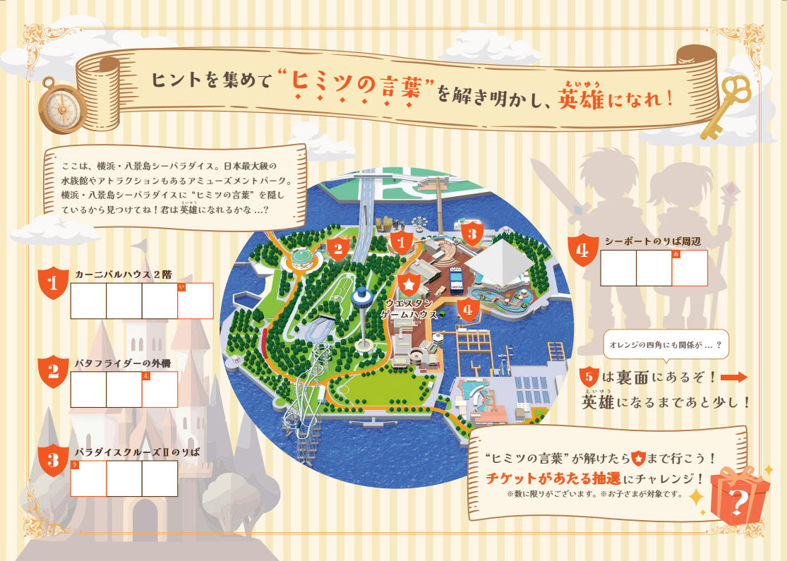 内容:施設内に散りばめられた謎を解き、ヒミツの言葉を完成させるミッションに挑戦。