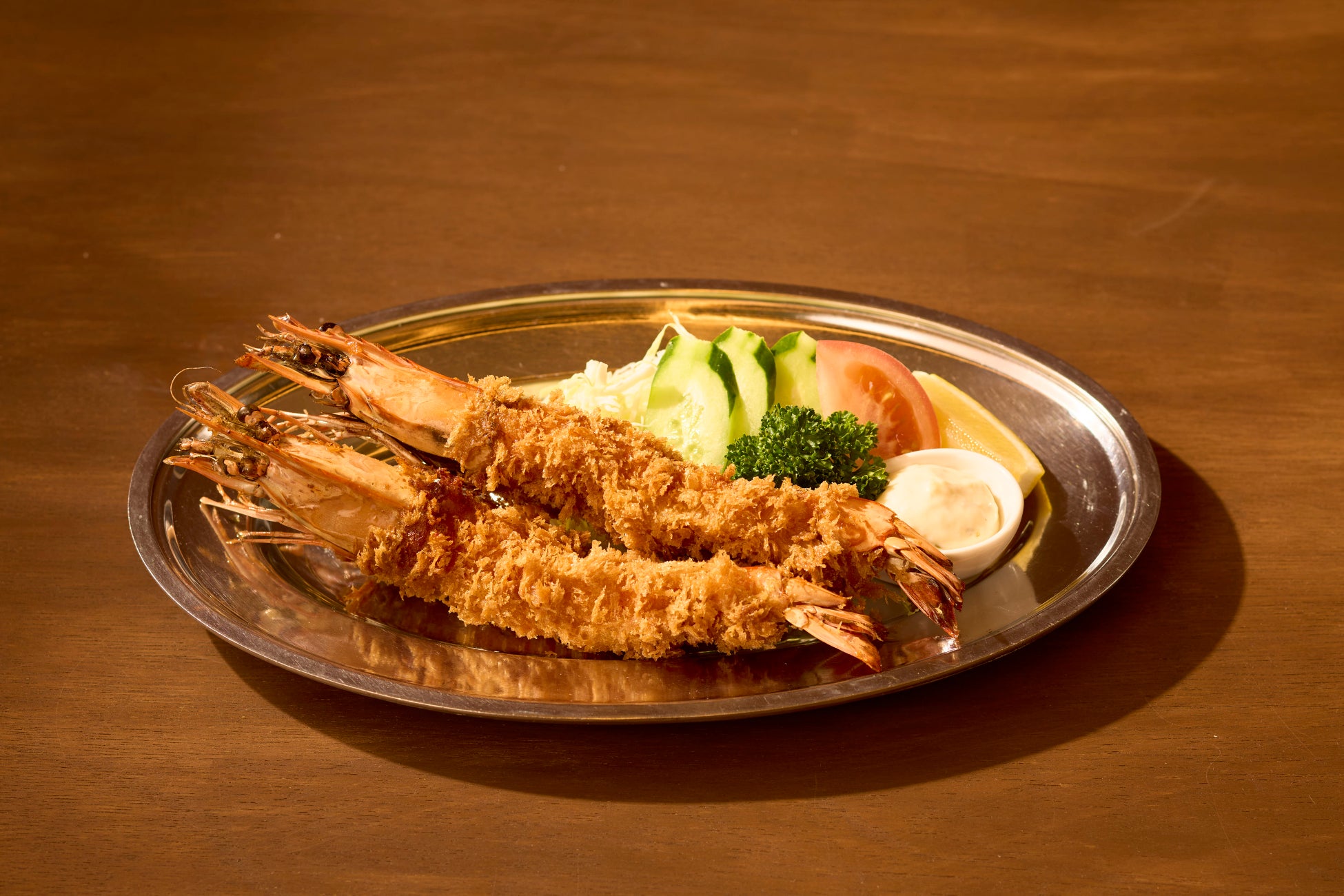 胸を躍らせた特別な日の思い出が蘇るよう、大ぶりの有頭エビを使用した食べ応えたっぷりのエビフライです。粗めのパン粉をまぶして揚げた軽やかな香ばしさと、弾力のあるエビの食感をお楽しみください。