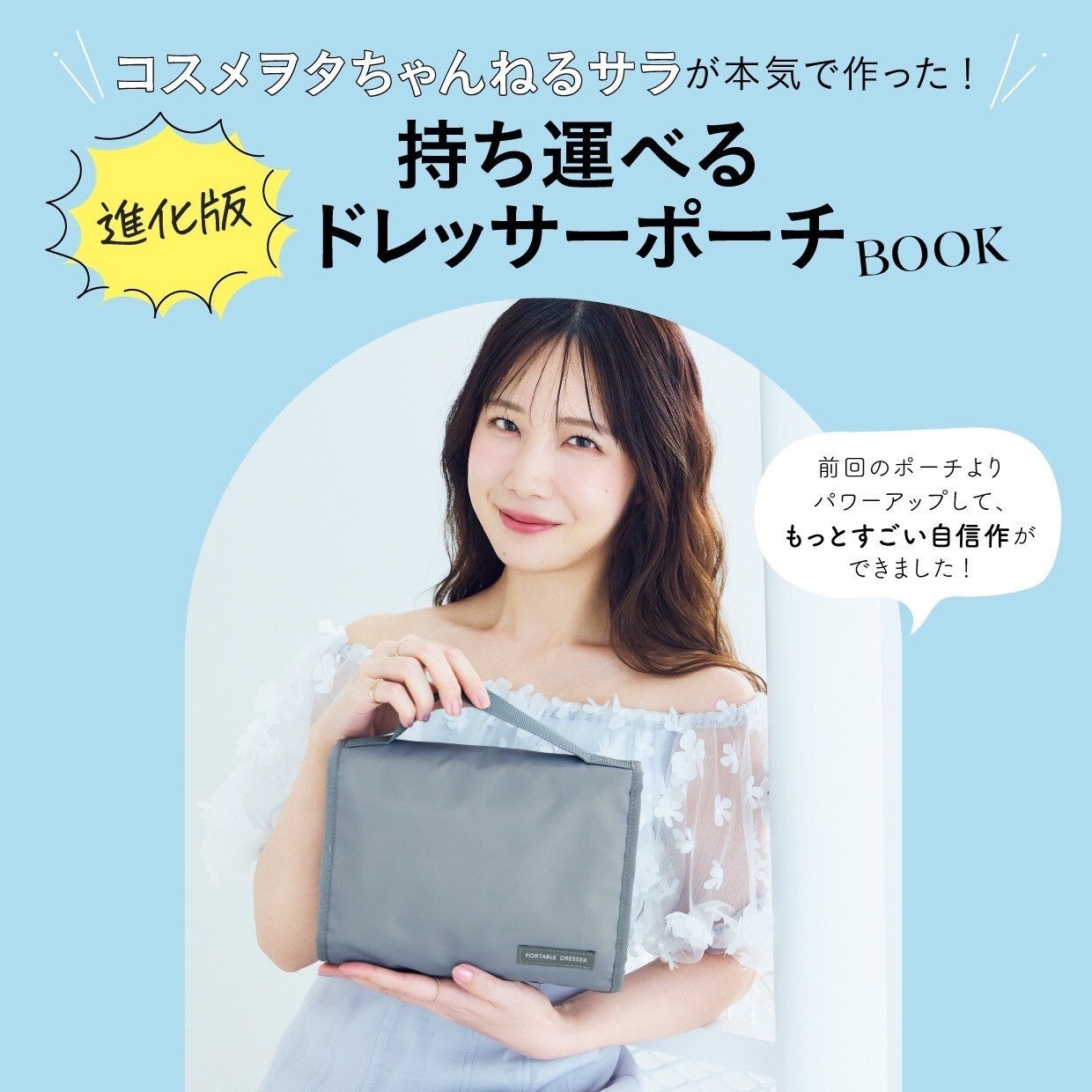 今回発売する『コスメヲタちゃんねるサラが本気で作った!進化版持ち運べるドレッサーポーチBOOK』は、2023年に発売した前作に続いて「コスメヲタちゃんねるサラ」プロデュースブック第2弾となります。前作から改良を重ね、容量アップや色合い変更でさらに便利なドレッサーポーチに仕上がっています!