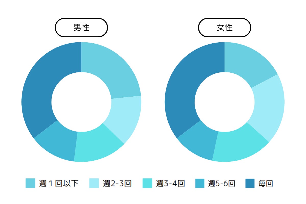 炊飯の頻度に関しては、毎回ご飯を炊くという方が全体の35.3%と、意外と多い事が分かった一方で、5人に1人は「週1回以下」(20.3%)、3人に1人は「週2-3回以下」(37.0%)と、数日分をまとめて炊いている方が最も多い事がわかりました。