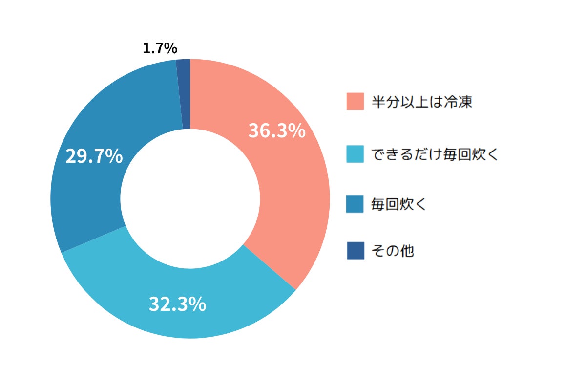 また、そのような方は、冷凍ご飯を温めて食べるのが日常になっていて、冷凍ご飯を食べる頻度については、36.3%の方が「半分以上が冷凍」と回答しています。