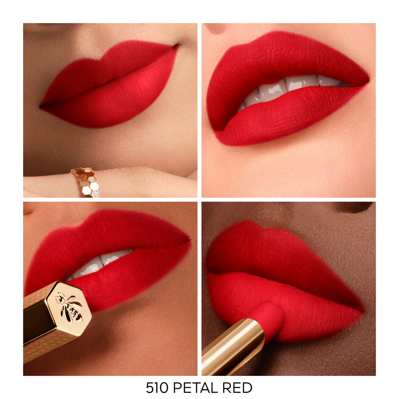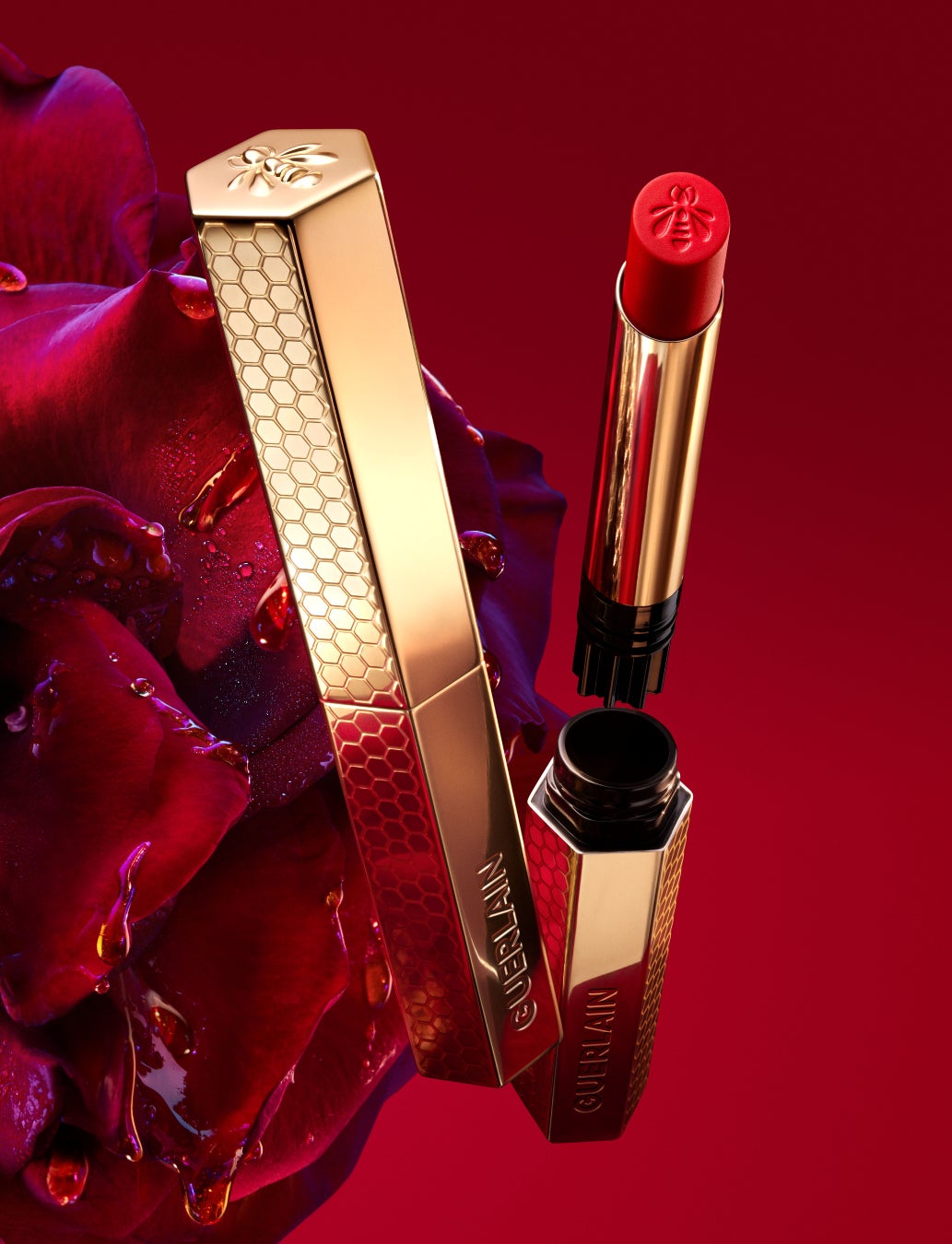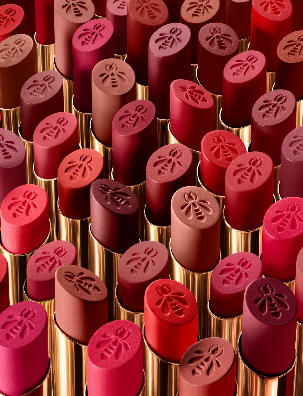 さらに、キャップ部分に立体的なエンボス加工を、さらにリップスティックの先端にもミツバチの刻印が施されています。また、一部ブティック¹では、オリジナルの刻印を入れることもでき、ゲランが誇る究極のパーソナライゼーションを体現しています。さらに、ゲランの環境への取り組みを反映しリフィル対応ケースを採用。リフィルを付け替えることで、1本のケースで20色を楽しめる環境に配慮したサステナブルラグジュアリーを体現しています。