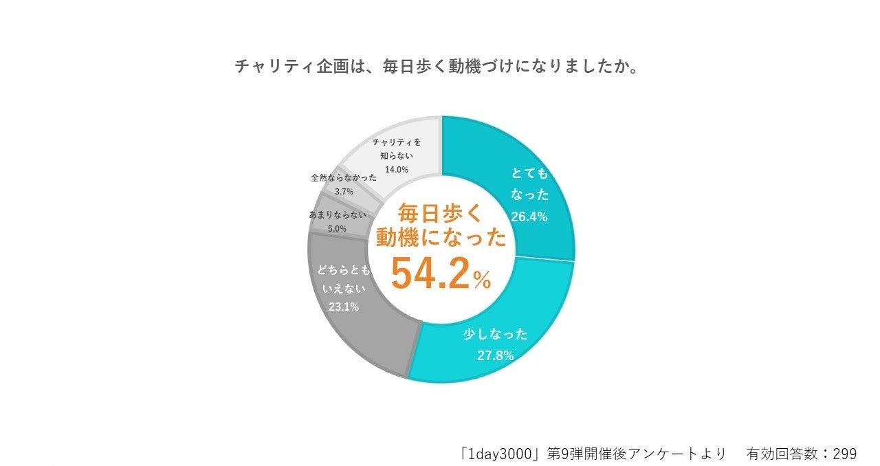 ~毎日3,000歩達成を競うチャリティも実施 ウォーキング継続意志も9割超え~