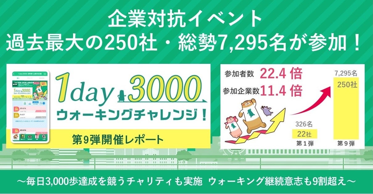 ウォーキングアプリ「aruku&」の企業対抗イベント、過去最大の250社・総勢7,295名が参加!