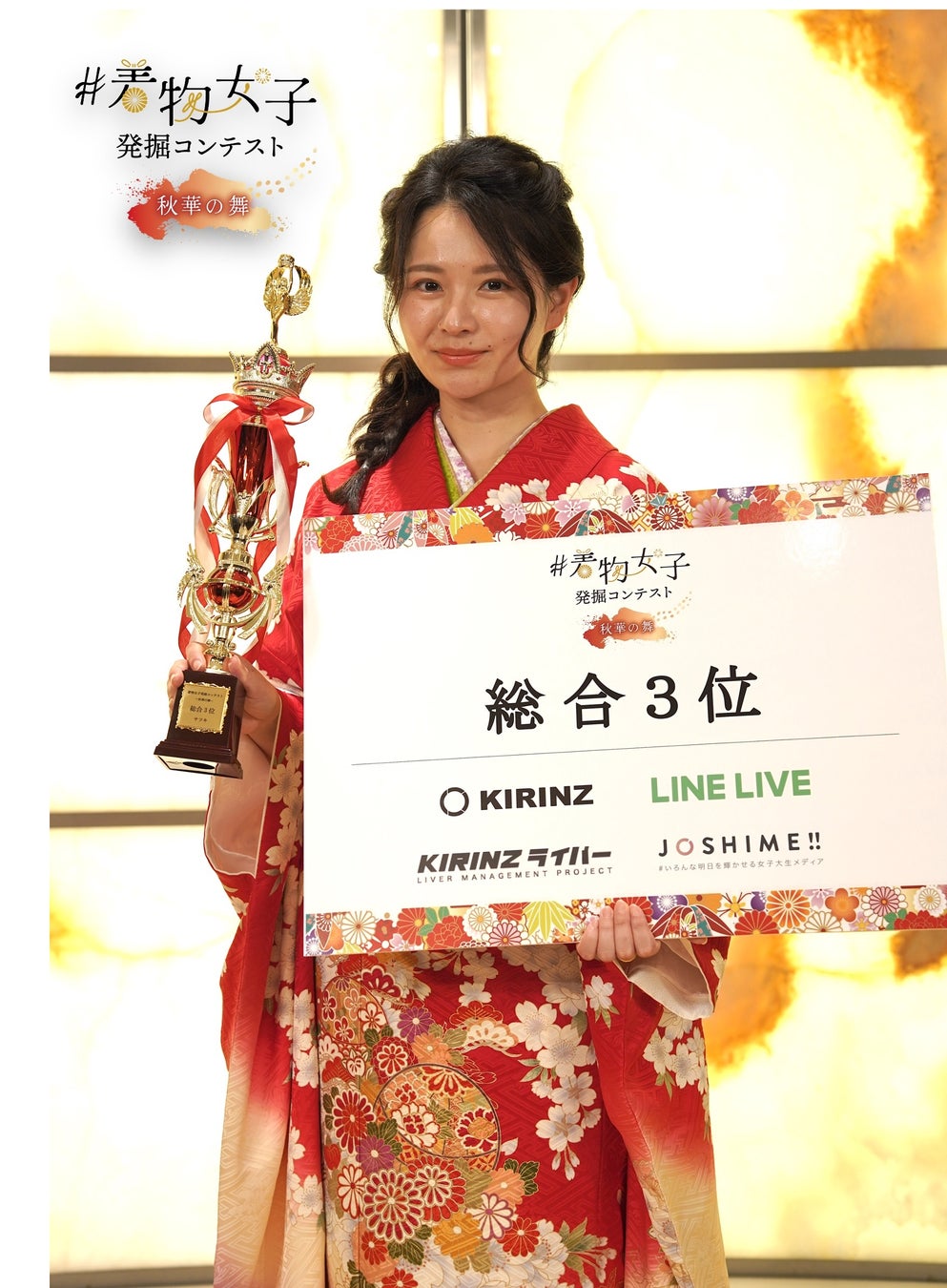 全国で開催する新時代のロールモデルを発掘するライブ配信コンテスト『MODECON』の運営、その他Z世代をターゲットとしたデジタル事業を手がける株式会社KIRINZ(本社:東京都渋谷区、代表取締役:鵜池航太)が開催した、オンラインコンテスト『着物女子発掘コンテスト〜秋華の舞〜』のグランプリに福岡県出身の“はな”さんが選ばれました。