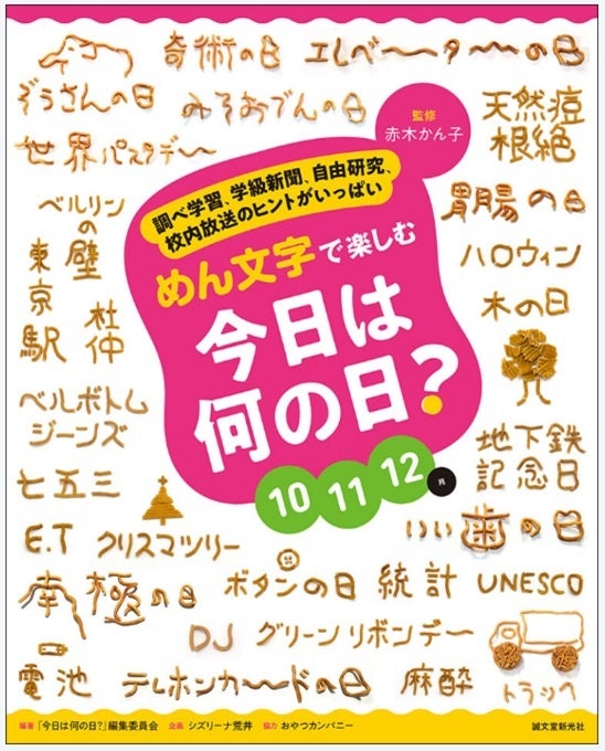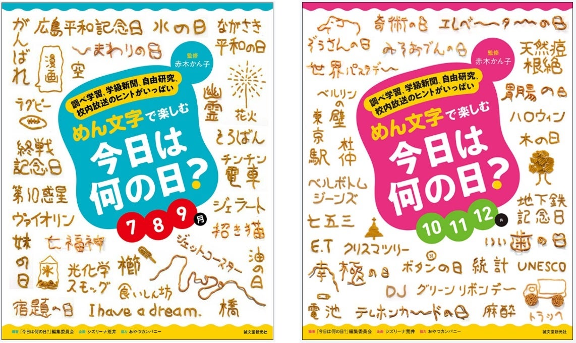そんなベビースターで作る“麺文字”で1年366日の記念日、行事、歴史的事件、出来事などを紹介する子ども向け教養事典『めん文字で楽しむ 今日は何の日?』。2022年12月に発売された1巻(1~3月)・2巻(4~6月)の続刊となる3巻(7~9月)・4巻(10月~12月)が発売となります。
