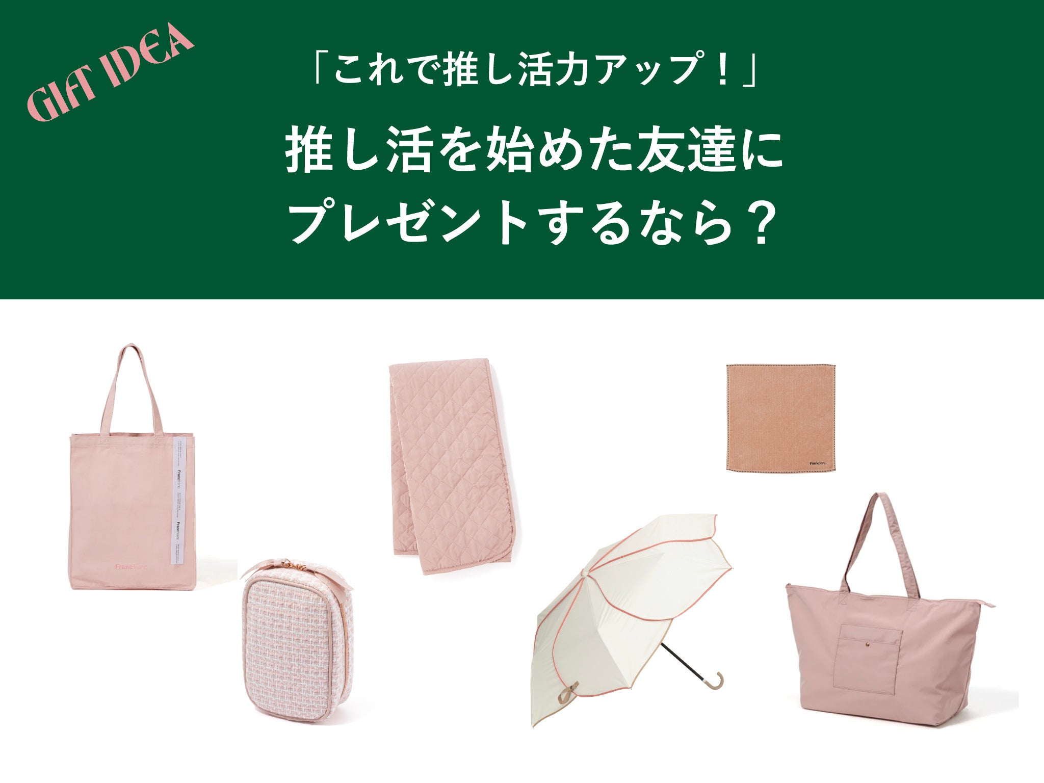 メンバーカラーで選べるトート、会場内の座席でも使いやすいスタンドポーチ、遠征やライヴ会場の中でも外でも使える便利な3WAYひざ掛け、カバンに一つ仕込ませておきたい折りたたみ傘で推し活力アップ!(天王寺ミオ)