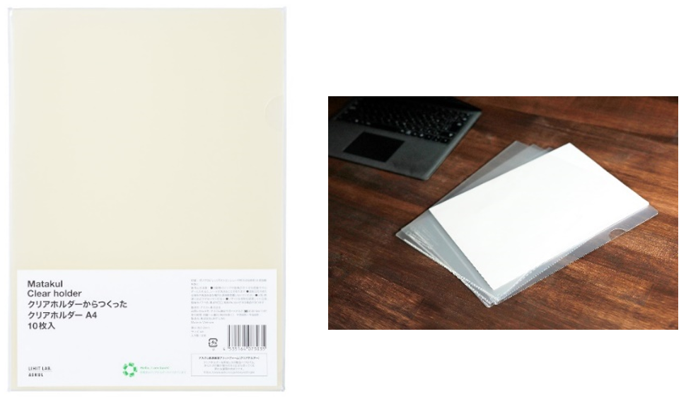 ・使用済みのクリアホルダーを使用した「水平リサイクル」の商品