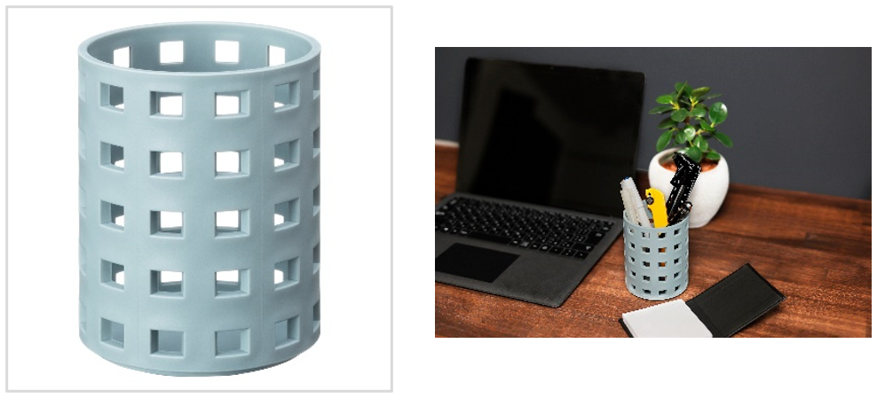 実際に販売する商品選定にあたっては、実証事業時に協力企業から要望が多く寄せられた水平リサイクル(※3)のクリアホルダーを筆頭に、身近な製品であるオフィス用品の試作を重ね、最終的に、クリアホルダー、ボールペン、ペン立て・小物入れの4種類の商品化となりました。