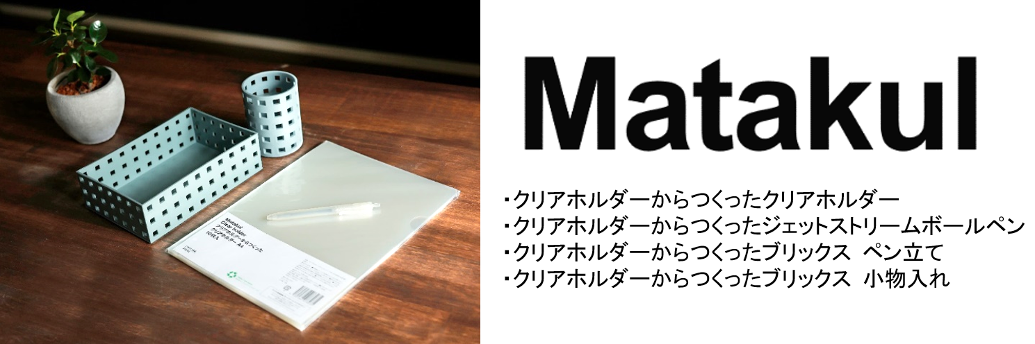 なお、「Matakul(マタクル)」の中でも、使用済みクリアホルダーを原料としている商品については右記のマークを商品に明記しています。