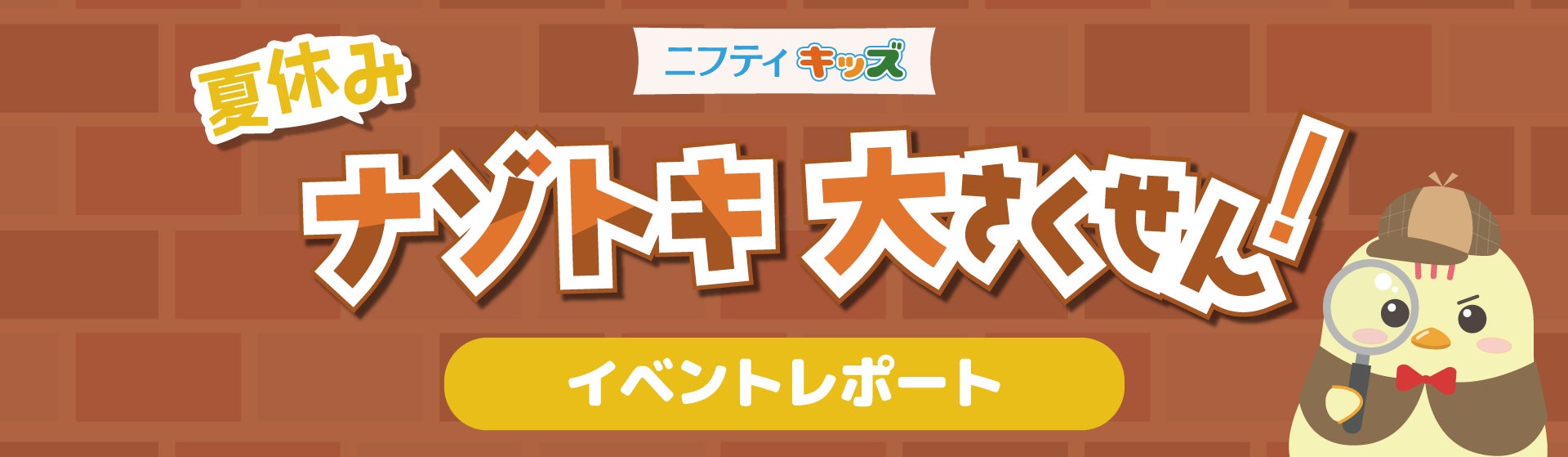 ニフティ株式会社(本社:東京都新宿区、代表取締役社長:前島 一就、以下、当社)は、当社が運営する子ども向けサイト「ニフティキッズ」にて、8月14日(火)と15日(水)に夏休みイベント「夏休みナゾトキ大さくせん!」を開催し、たくさんのご家族にイベントをお楽しみいただきました。