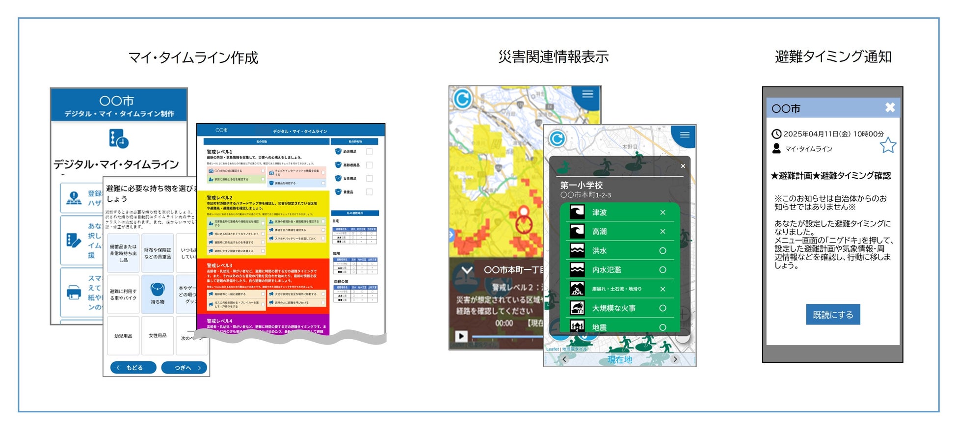 自宅だけでなく、勤務先や実家、支援する人がいる場所など、複数の箇所について、危険度に応じたタイミングの設定が可能です。