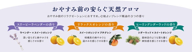 “アンドグッドナイト”シリーズは快眠を応援するリラクゼーションアイテムが揃います。