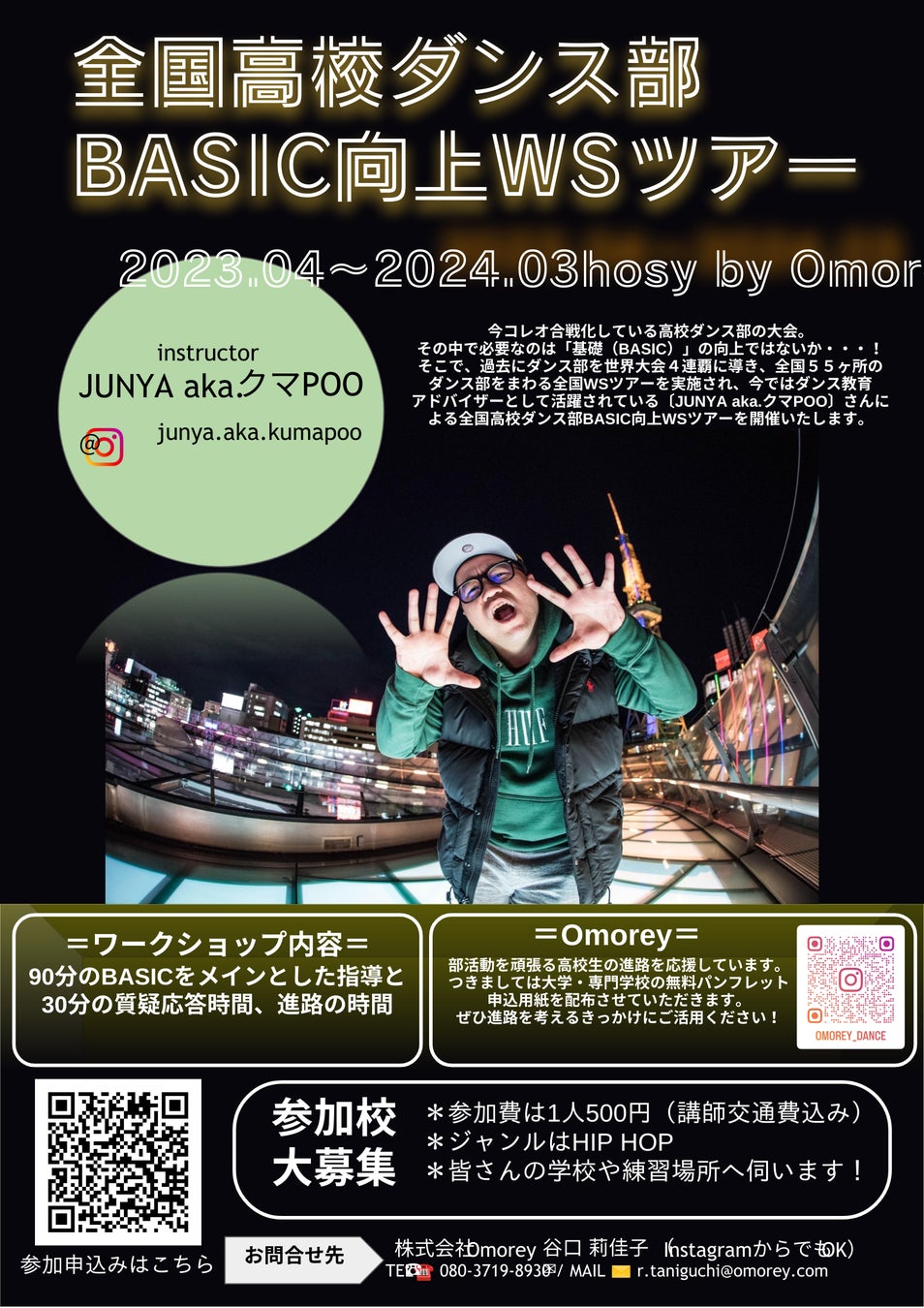 世界大会四連覇ダンス部コーチ「Junya.aka.クマPOO」による全国高校ダンス部BASIC向上WSツアーが開催されます!