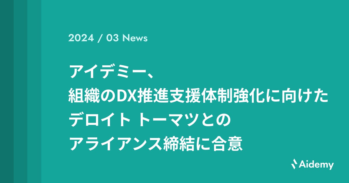 アイデミー、組織のDX推進支援体制強化に向けたデロイト トーマツとのアライアンス締結に合意