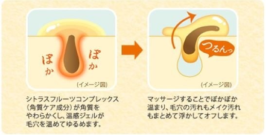 ◆レモン色の温感ジェルが、じんわりメイクや汚れを浮き上がらせます。洗い上がりは手に吸い付くようなもっちり肌へ。