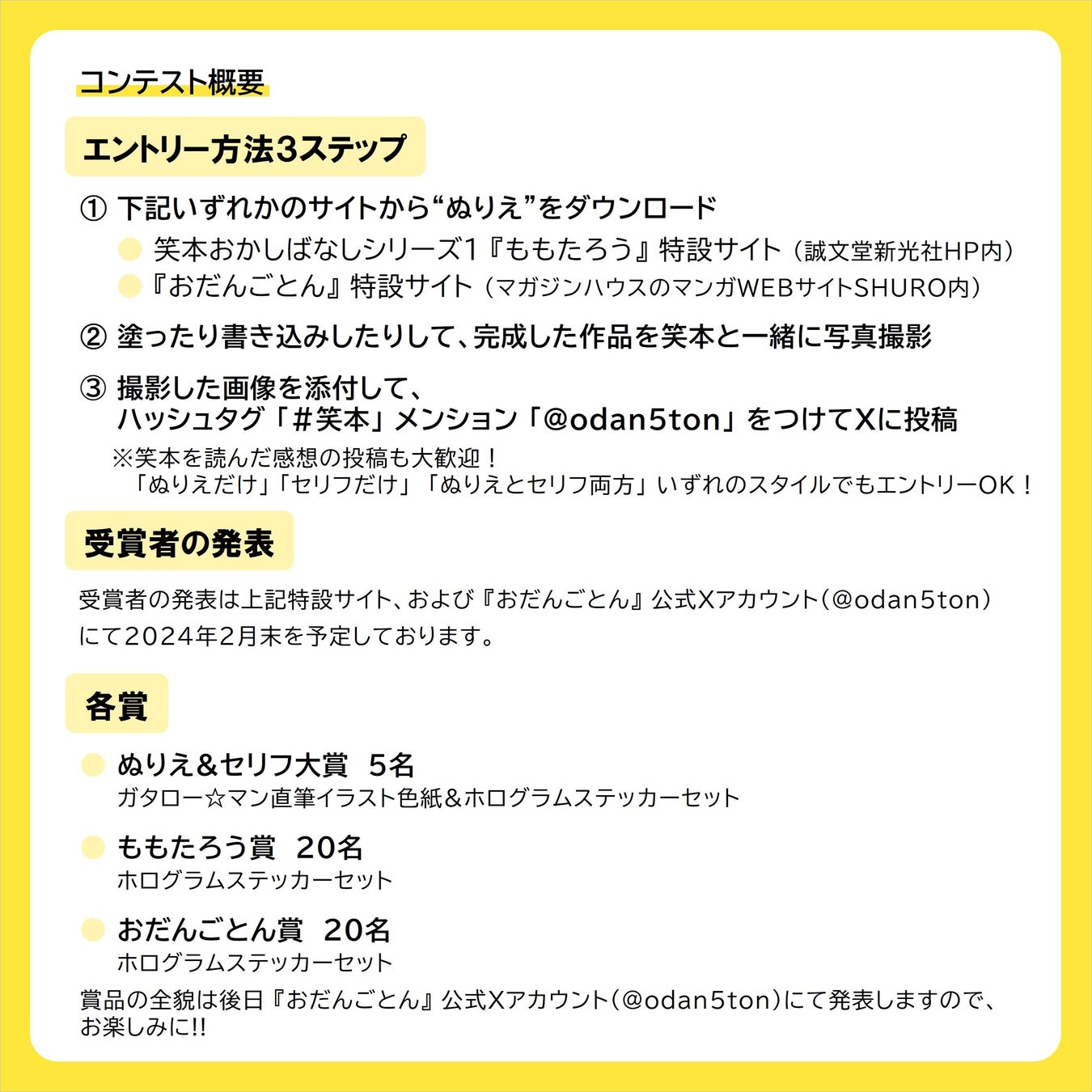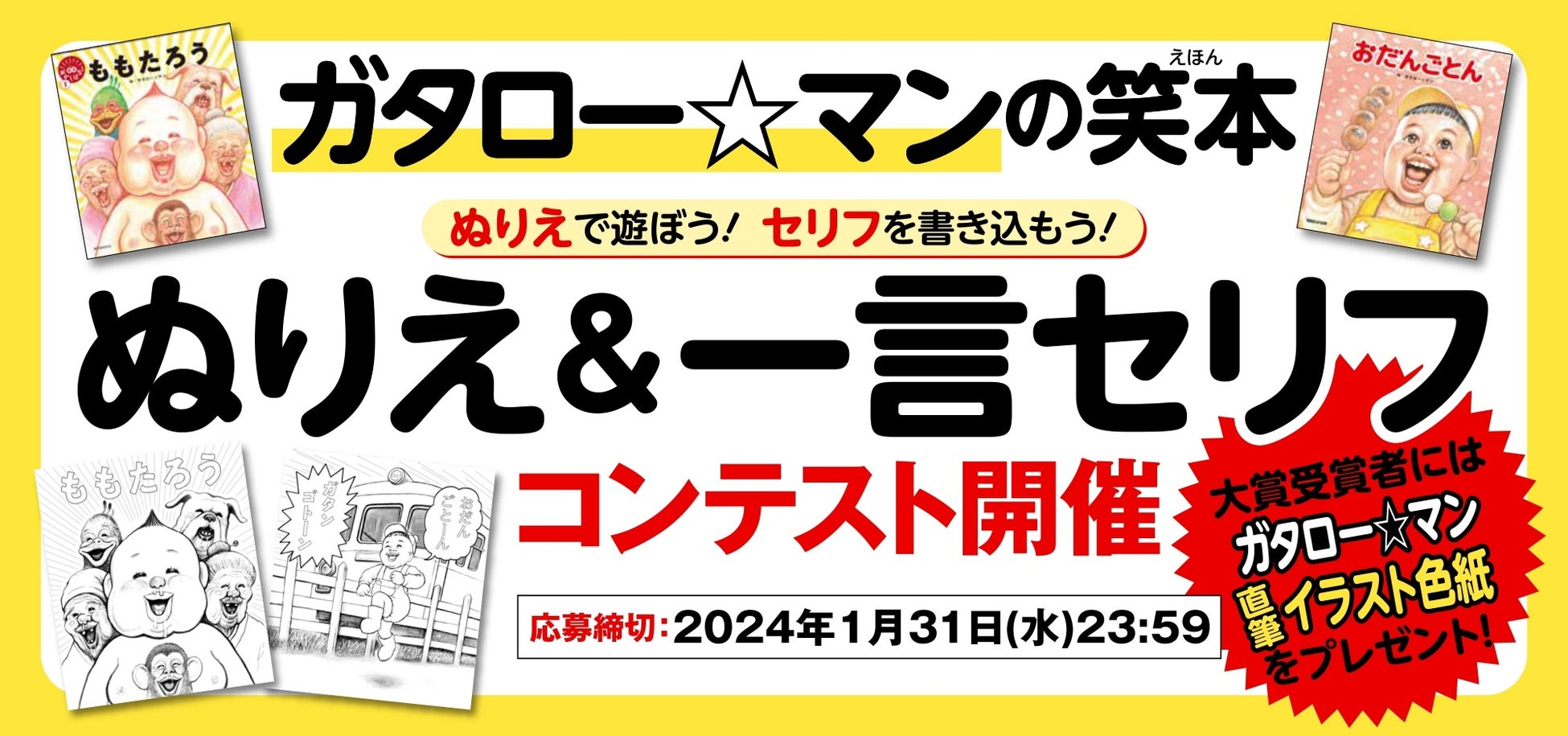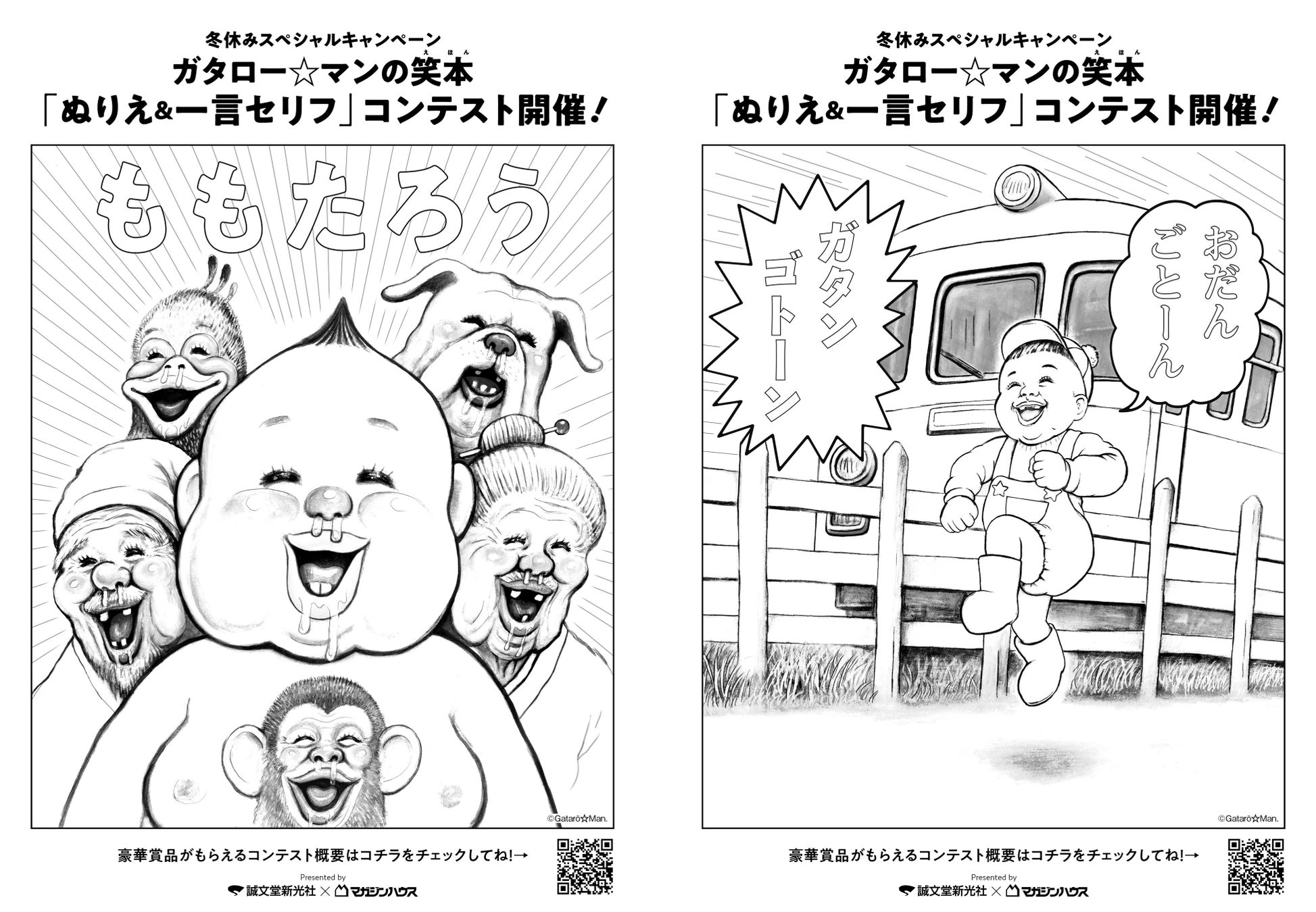 株式会社マガジンハウス(本社:東京都中央区、代表取締役社⻑:鉄尾周一)は、株式会社誠文堂新光社(東京都文京区、代表取締役社⻑:小川雄一)と2023年12月22日(金)より、ガタロー☆マンの笑本、冬休み特別企画「ぬりえ&一言セリフ」コンテストをX(エックス)にて合同開催します。