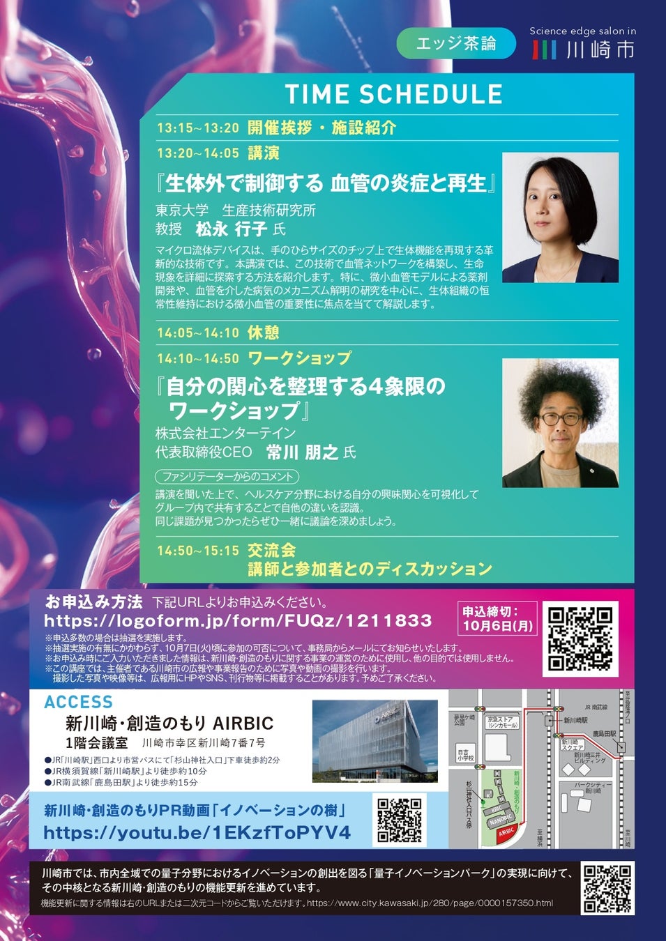 【10/15 開催】川崎市主催 令和7年度 第2回エッジ茶論のご案内:マイクロ流体デバイスで探る生体機能ー細胞レベルからの疾患解析と制御ー