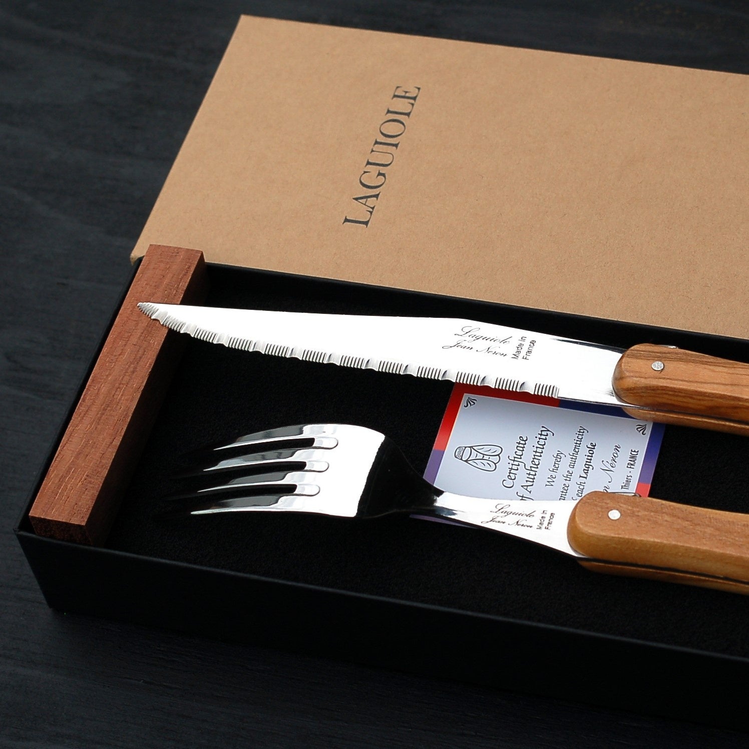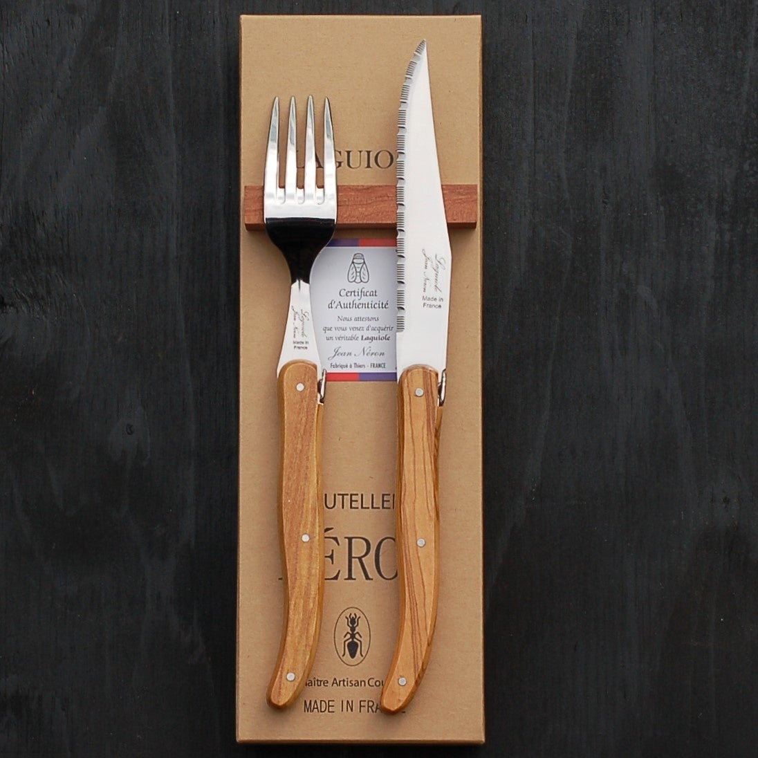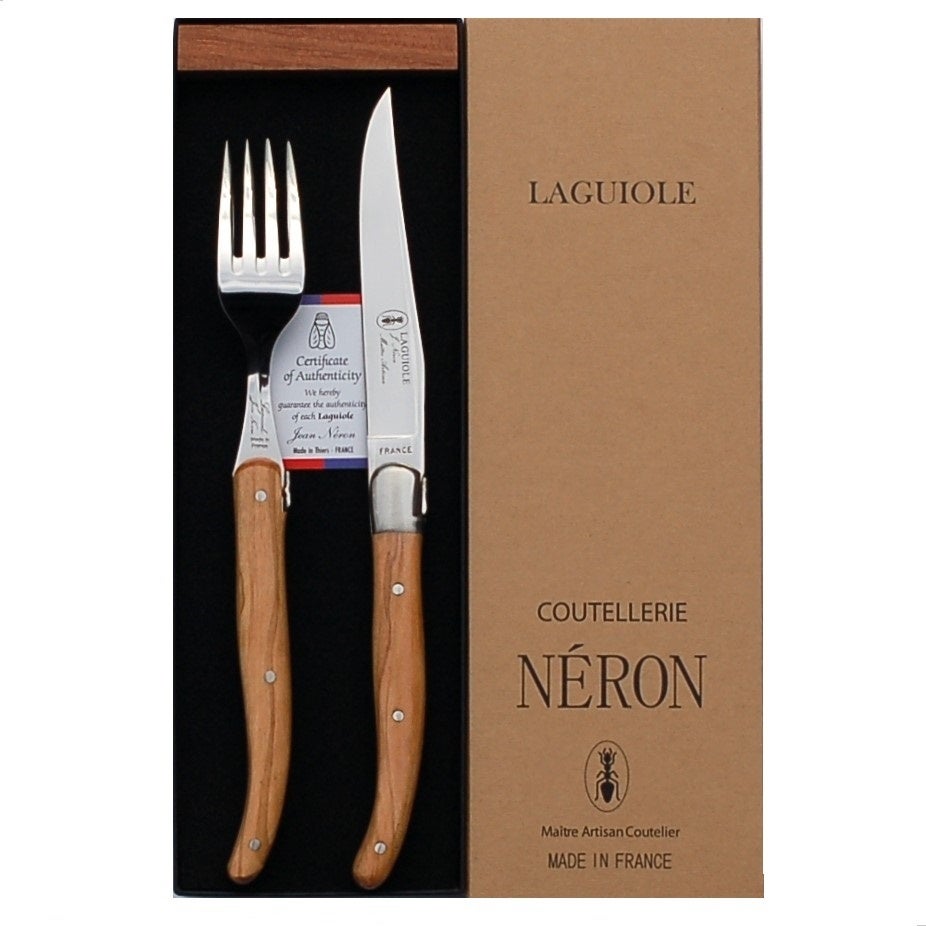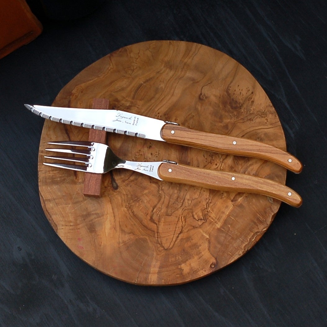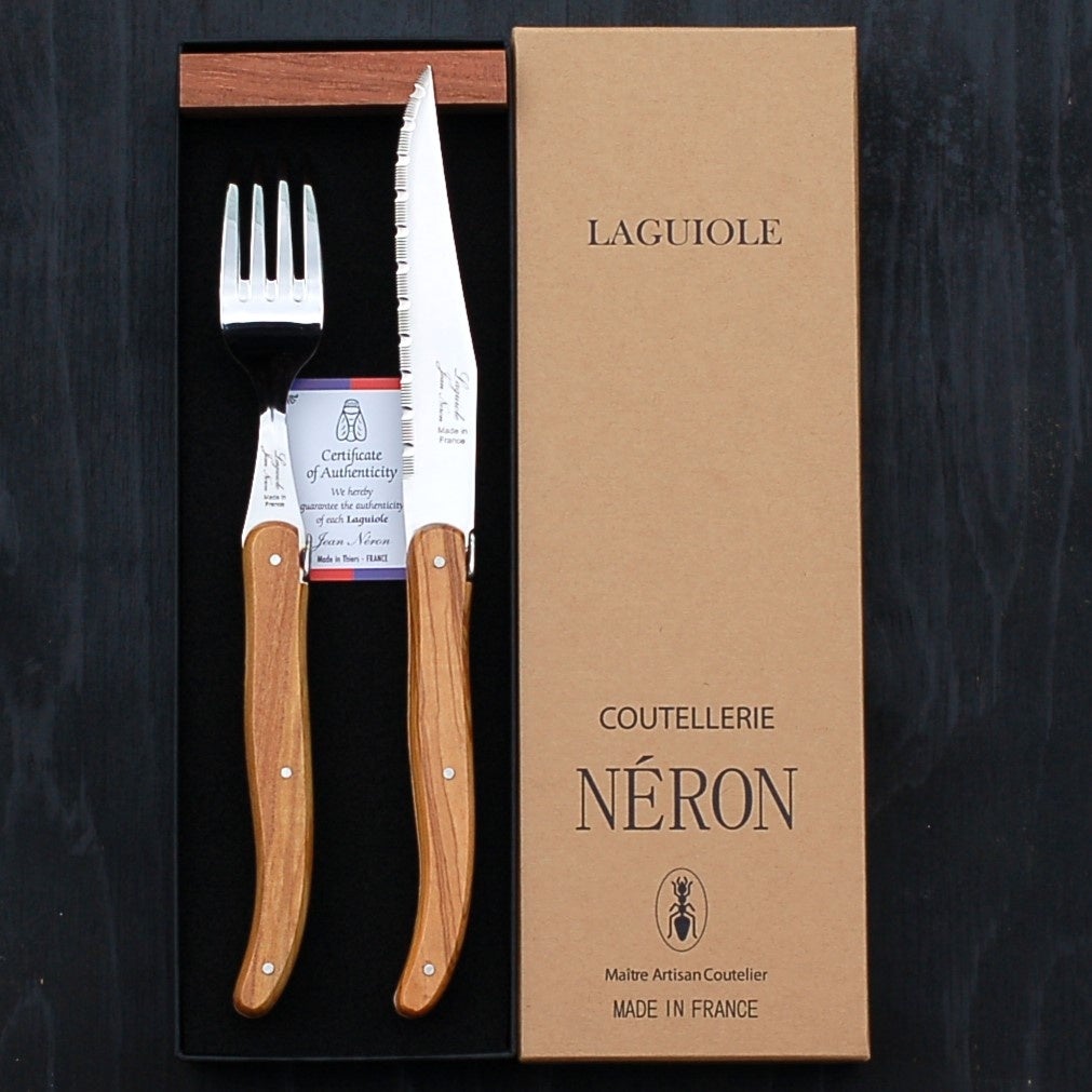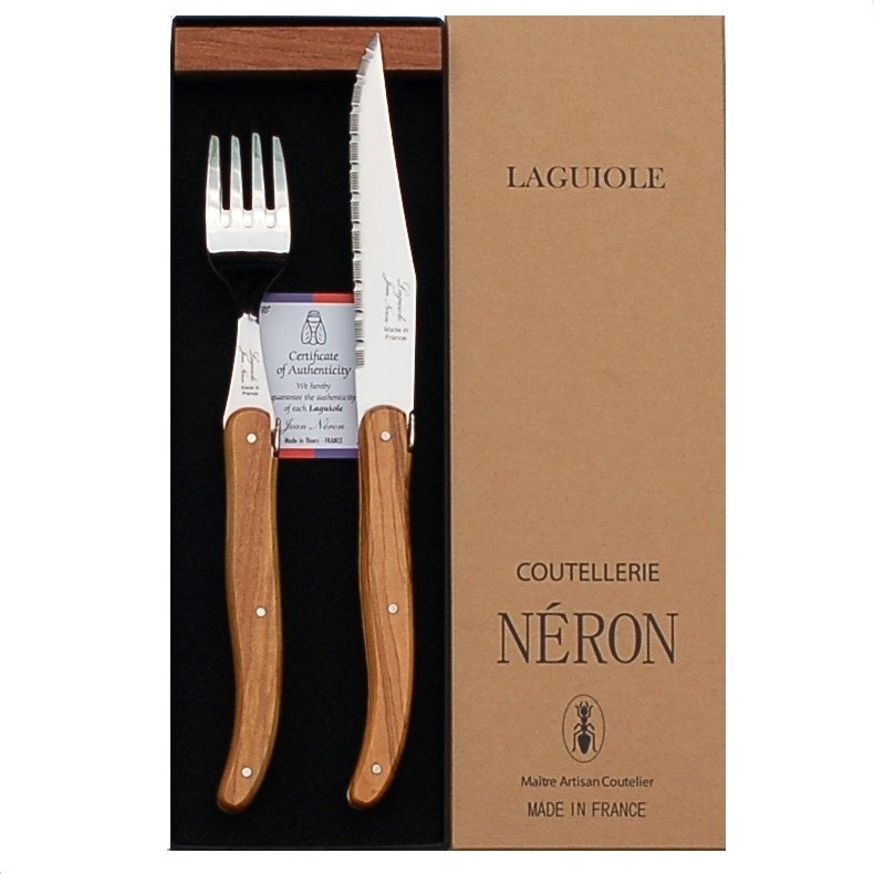 フランス・NERON社のオリーブハンドルのステーキナイフとフォーク